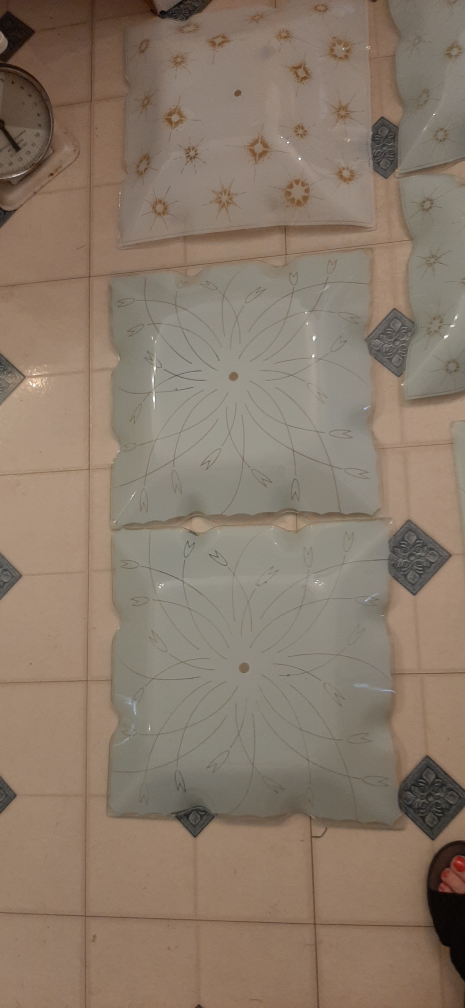 Used ceiling light covers. There are various shapes and designs, including square and round options. Perfect for replacing damaged covers or updating your lighting fixtures!