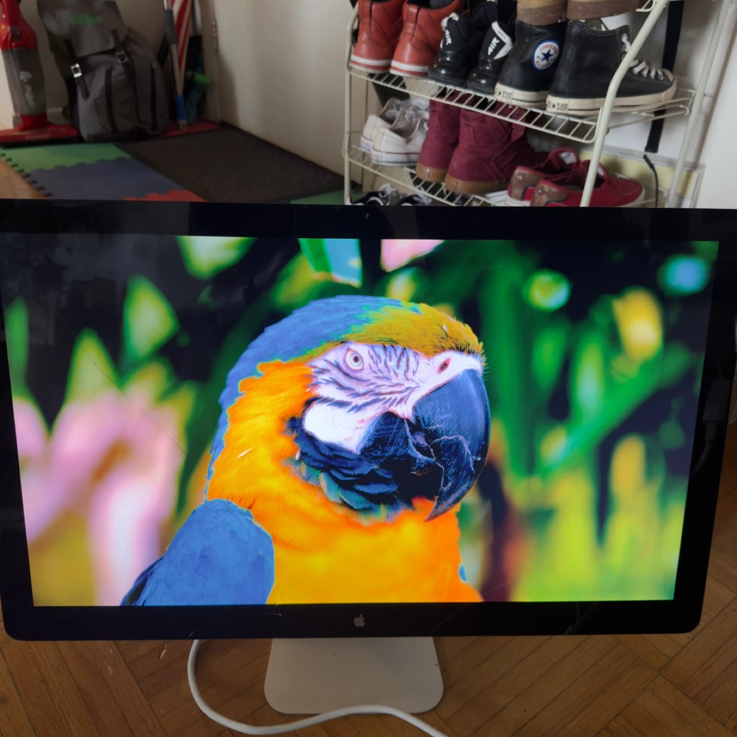 Selling an Apple Thunderbolt Display. 27-inch monitor with built-in camera, microphone, and speakers. glass has a crack.Can’t really notice crack when screen is on. Works with newer Mac’s using Thunderbolt 2 to usb c adapter..send me message if interested.