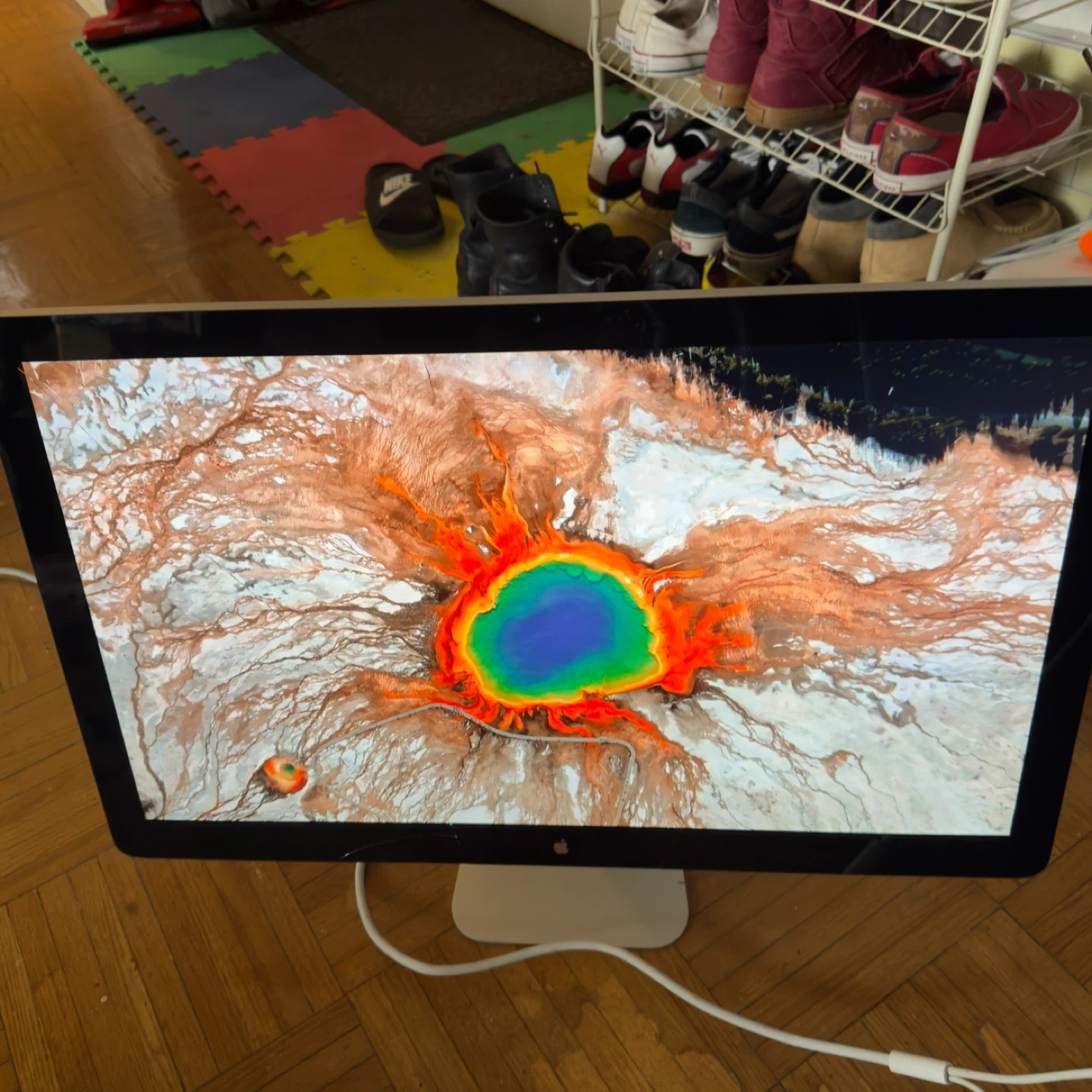 Selling an Apple Thunderbolt Display. 27-inch monitor with built-in camera, microphone, and speakers. glass has a crack.Can’t really notice crack when screen is on. Works with newer Mac’s using Thunderbolt 2 to usb c adapter..send me message if interested.