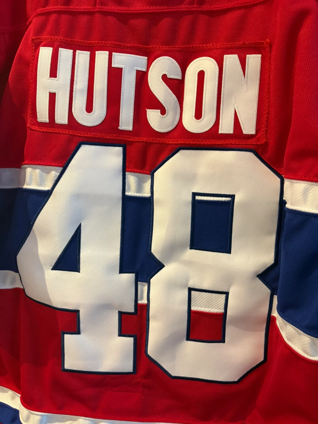 Authentic Pro NHL jersey featuring "Hutson" and "48" on the back. Made in Canada with NHL licensed official merchandise. Standard sizing.