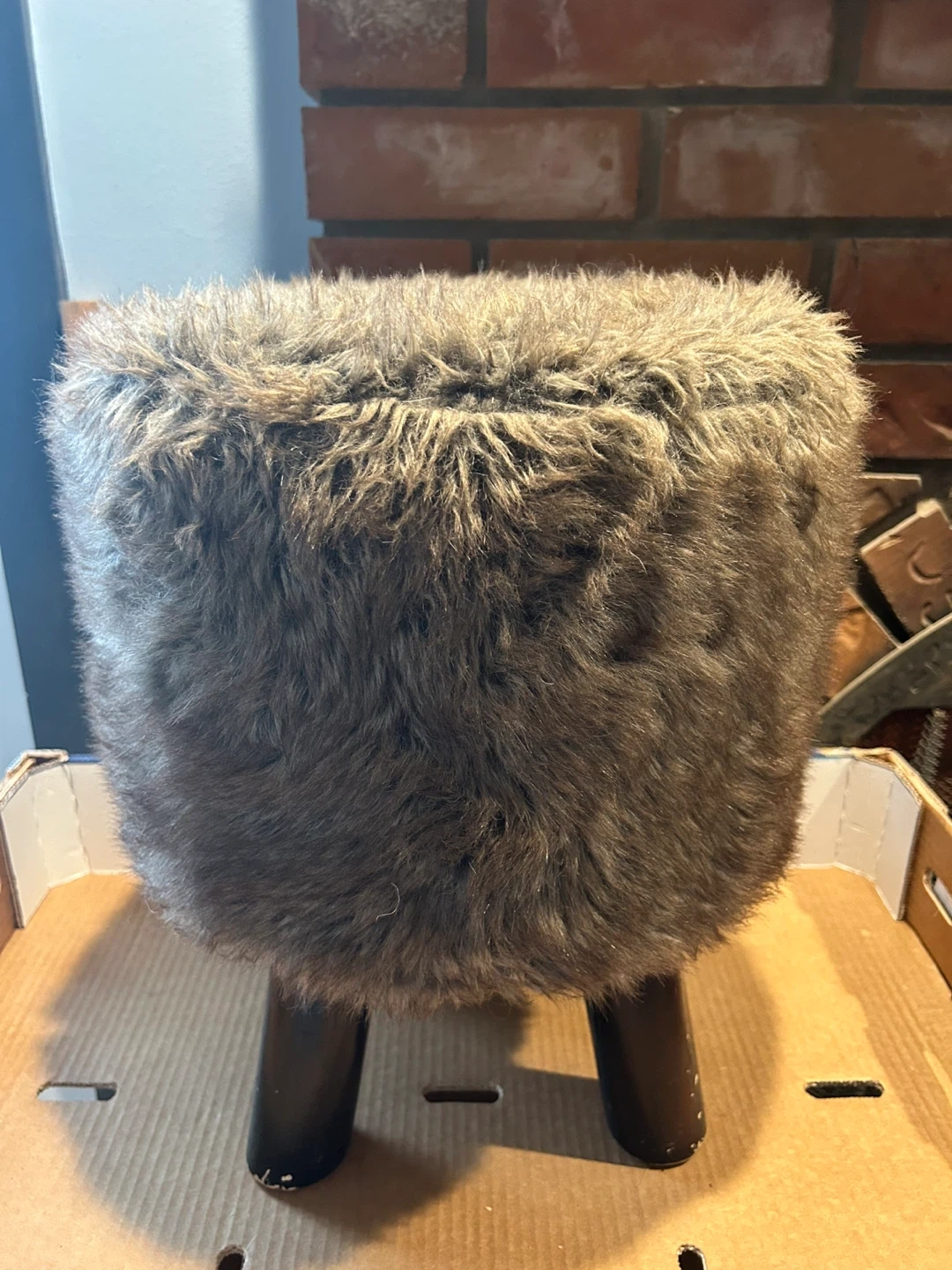 Add a touch of cozy charm to your space with this faux fur ottoman footstool! This used ottoman features a soft, furry top and sturdy wooden legs, perfect for resting your feet or as a stylish accent piece. I'm estimating its value to be around $40 based on similar listings. Who knows what adventures this ottoman has seen? Maybe it's dreamt of being a bear in a past life! But rest assured, if this ad is still up, the ottoman is still available and ready for a new home.