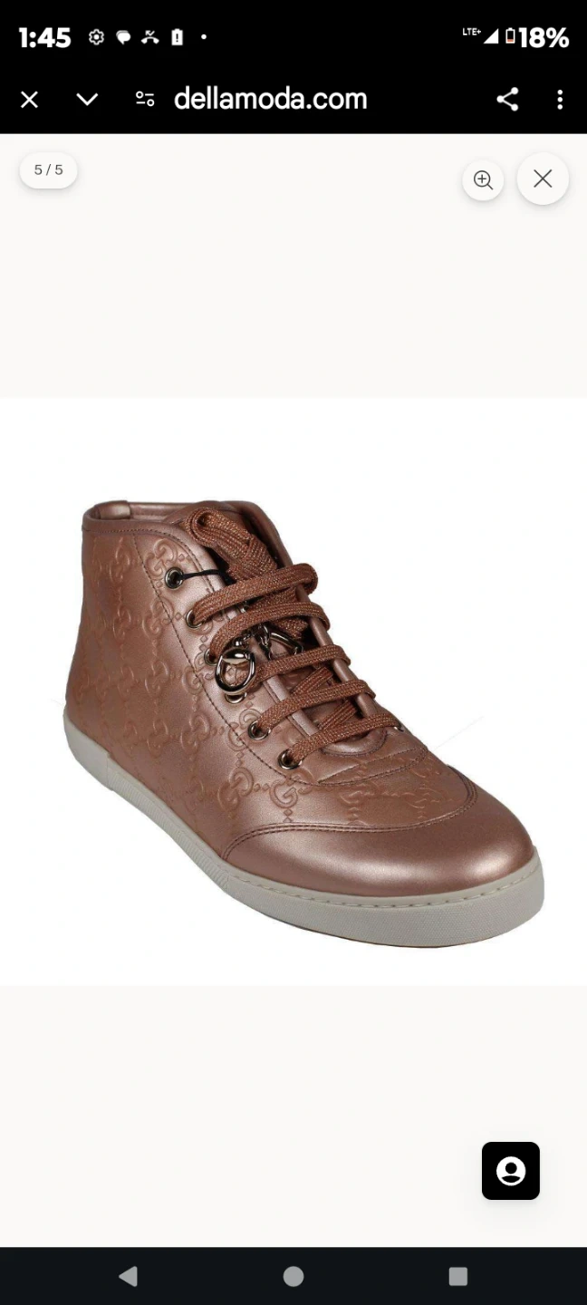 Authentic Gucci high-top sneakers in a rose gold metallic finish. These feature the iconic GG embossed pattern throughout the leather upper. Made in Italy. Size 6.5