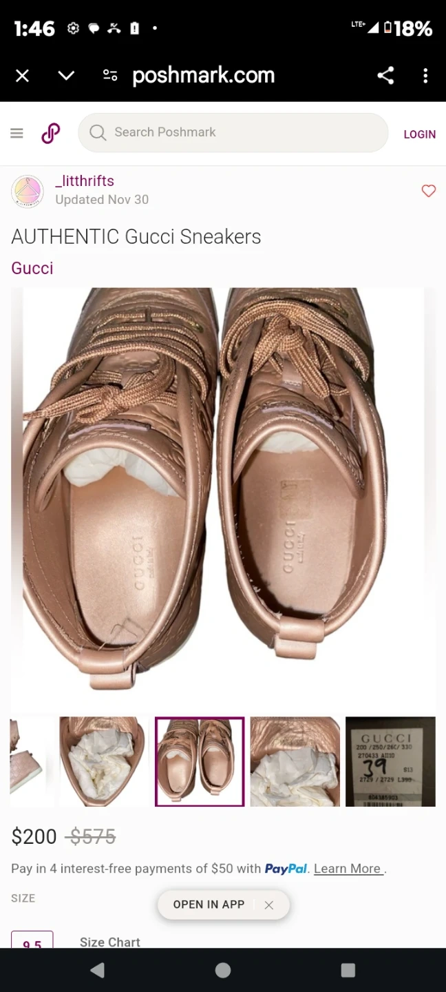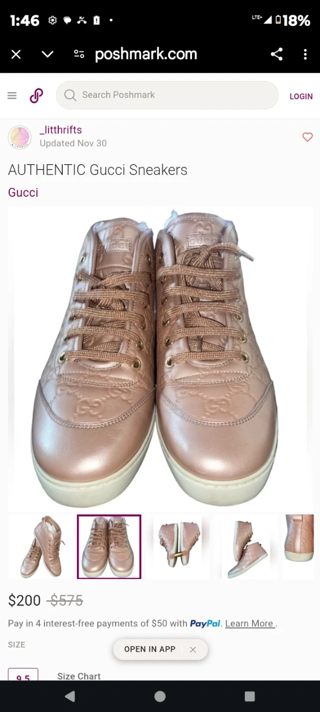 Gucci GG Embossed Leather Sneakers Rose Gold Size 9.5