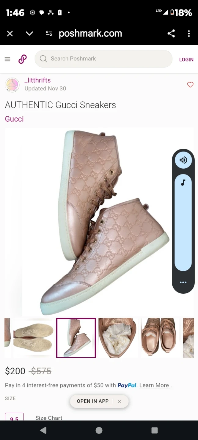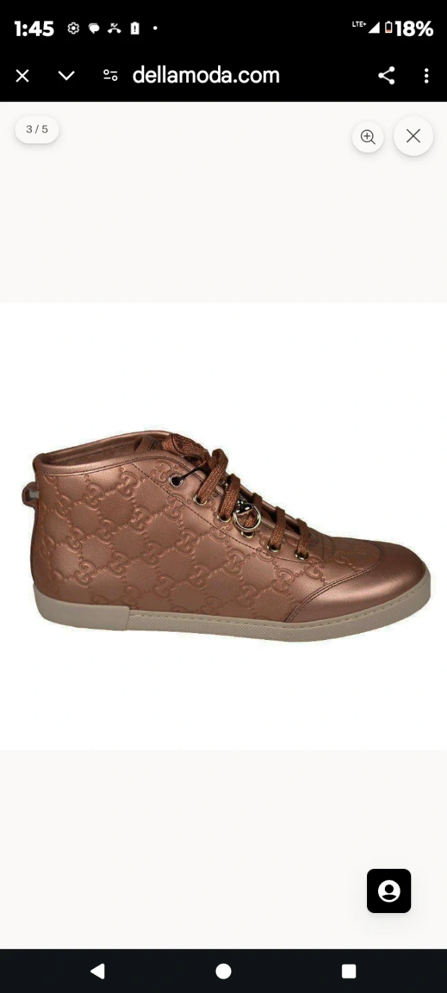 Authentic Gucci high-top sneakers in a rose gold metallic finish. These feature the iconic GG embossed pattern throughout the leather upper. Made in Italy. Size 6.5