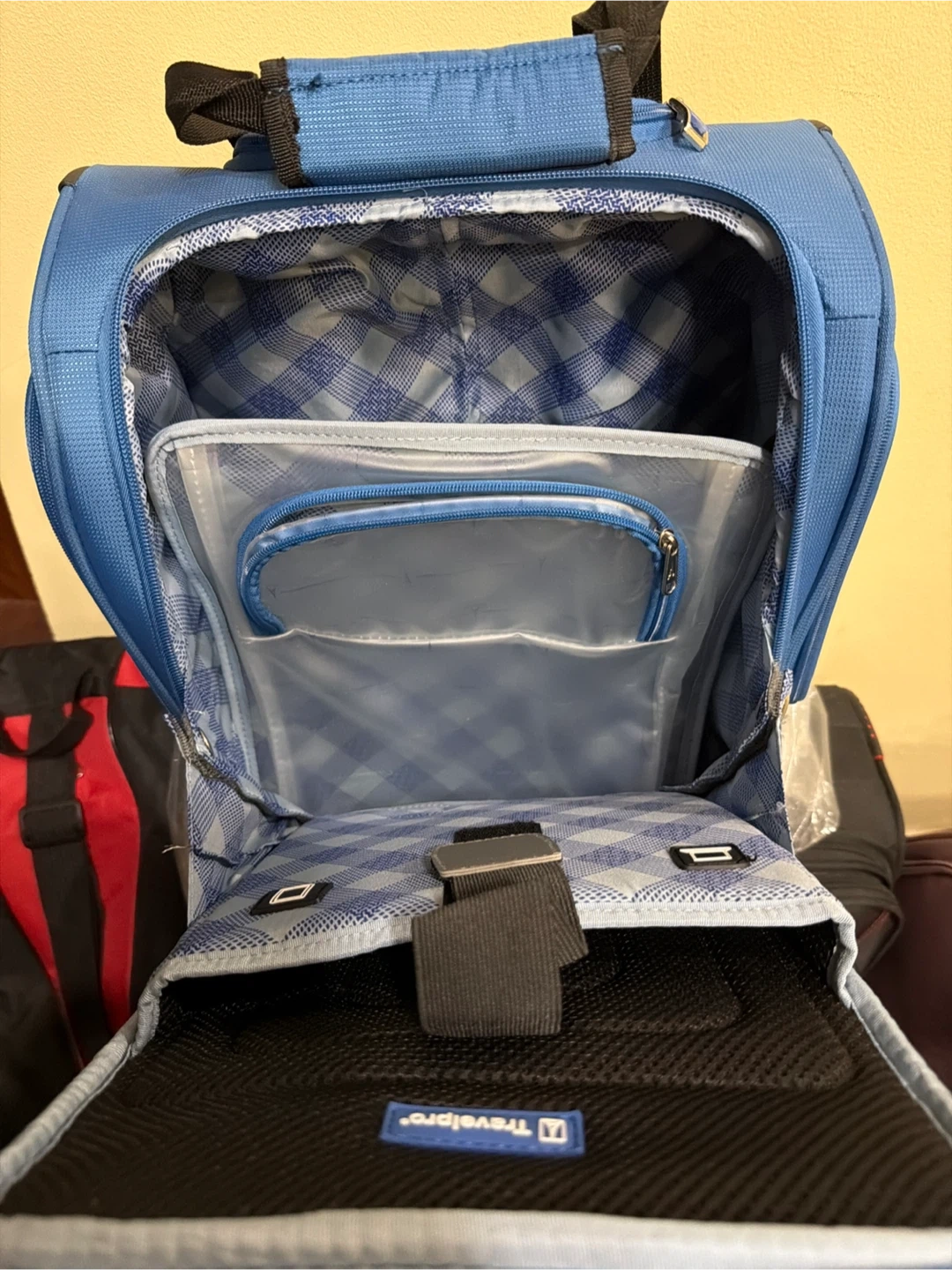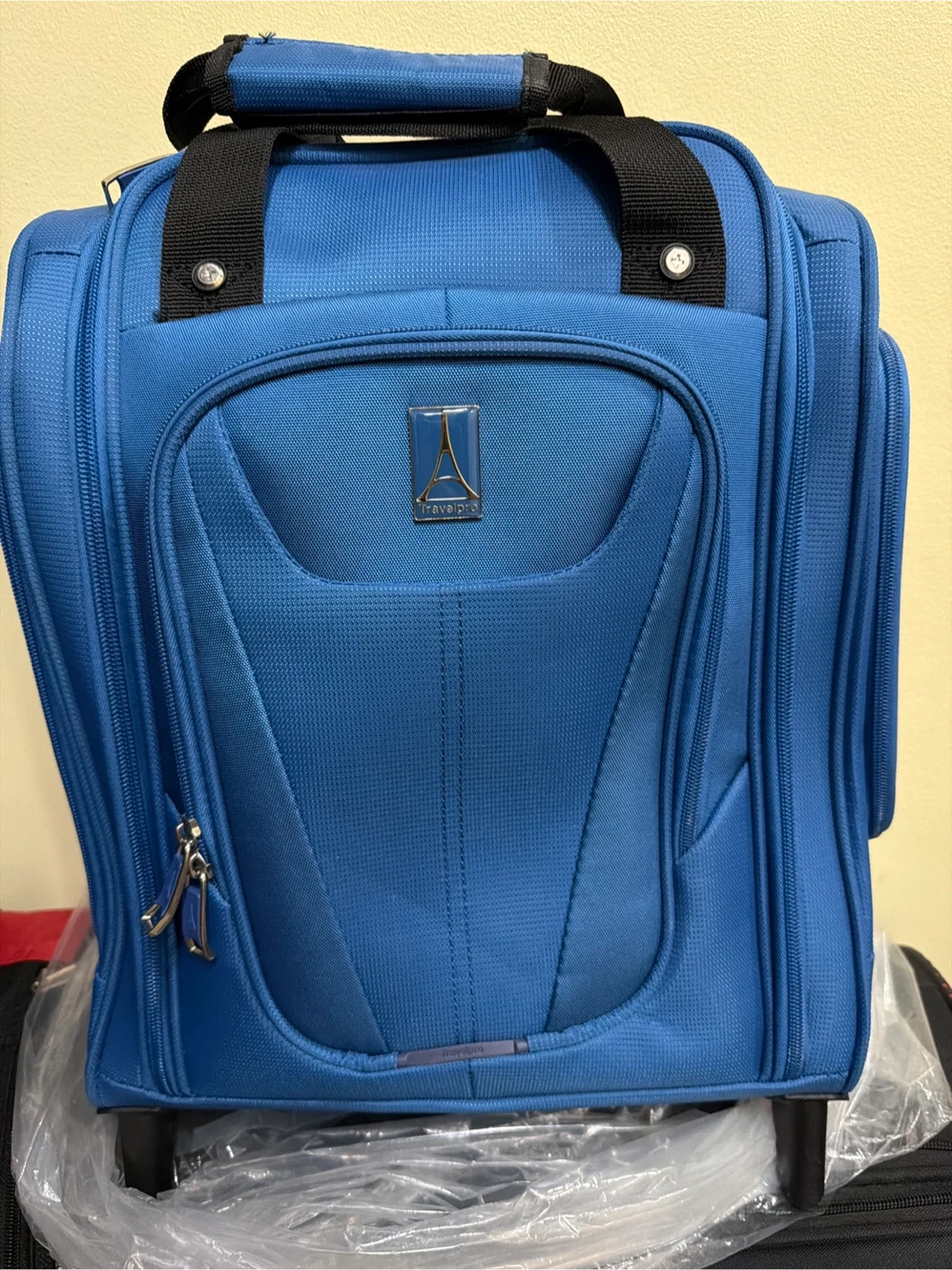 Selling a Travelpro Luggage Maxlite 5 Softside Lightweight Rolling Underseat Compact Carry on Upright 2 Wheel Bag, Men and Women, Ensign Blue, 15-Inch. It's in great condition and ready for your next trip! It features a spacious interior with multiple compartments to keep your belongings organized.