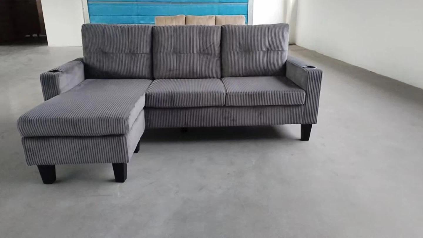 Check out this FAB 3-seater sectional sofa in soft corduroy fabric with BUILT-IN CUPHOLDERS πΉ! Available in black, beige, and grey πββοΈ