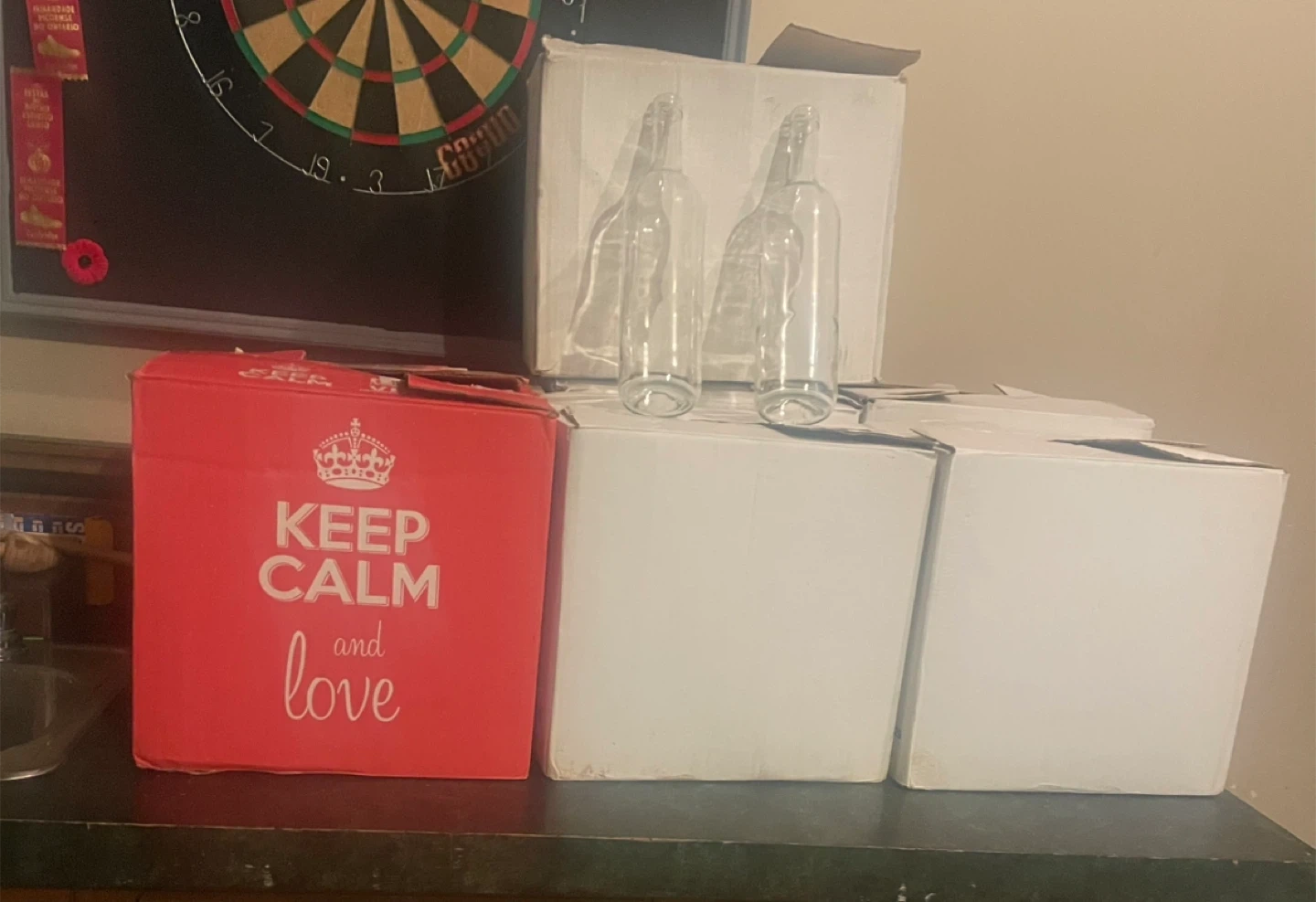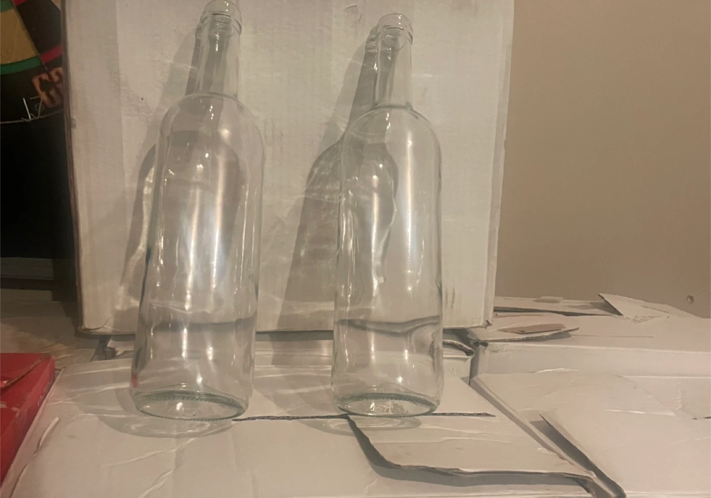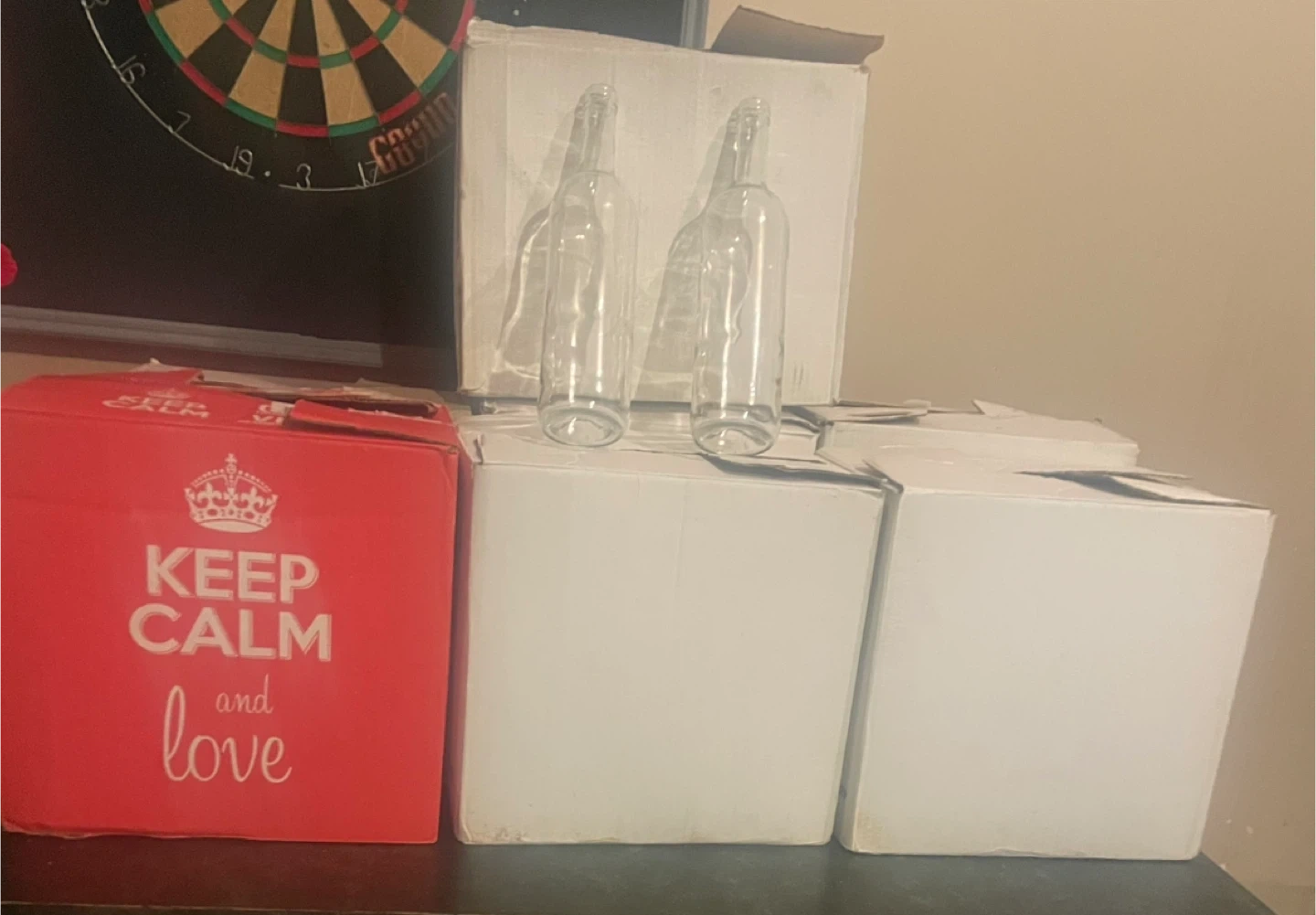 7 cases of 12 clear glass bottles, perfect for home made wine or decorative projects.