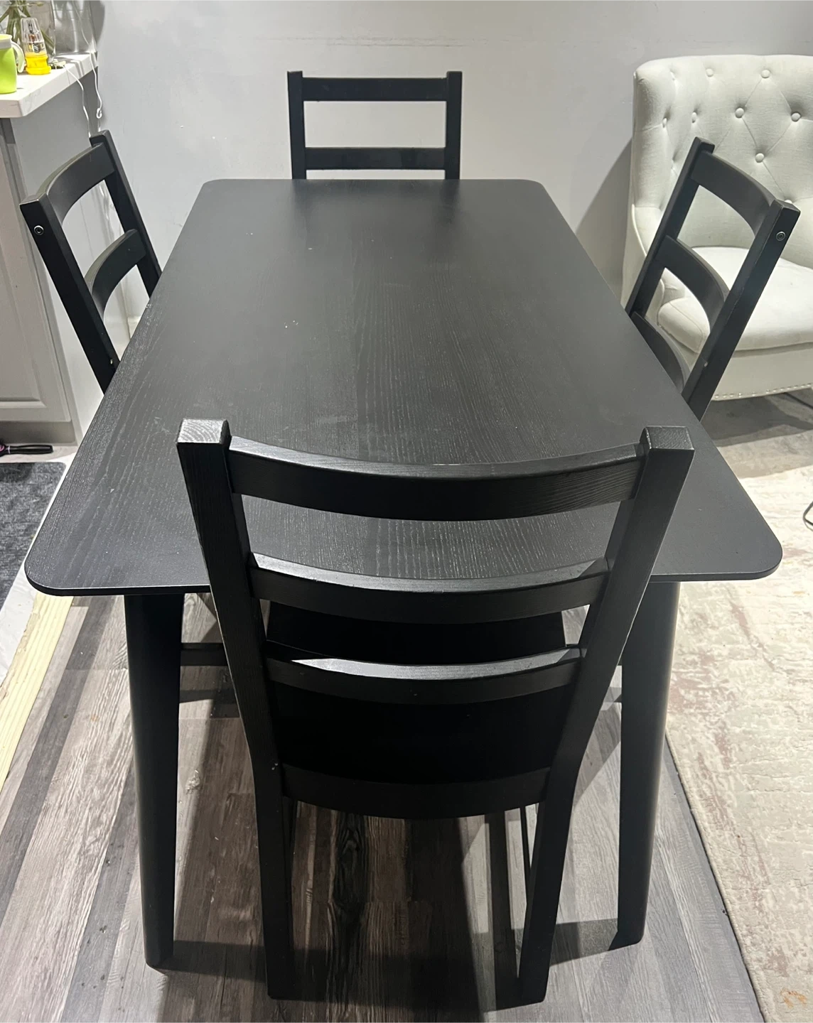 Selling an IKEA LISABO table (140 × 78 cm) in black/ash veneer. Modern, minimalist design that fits well in dining rooms, kitchens, or as a workspace/desk. The table is sturdy, stylish, and easy to match with different chairs and décor.