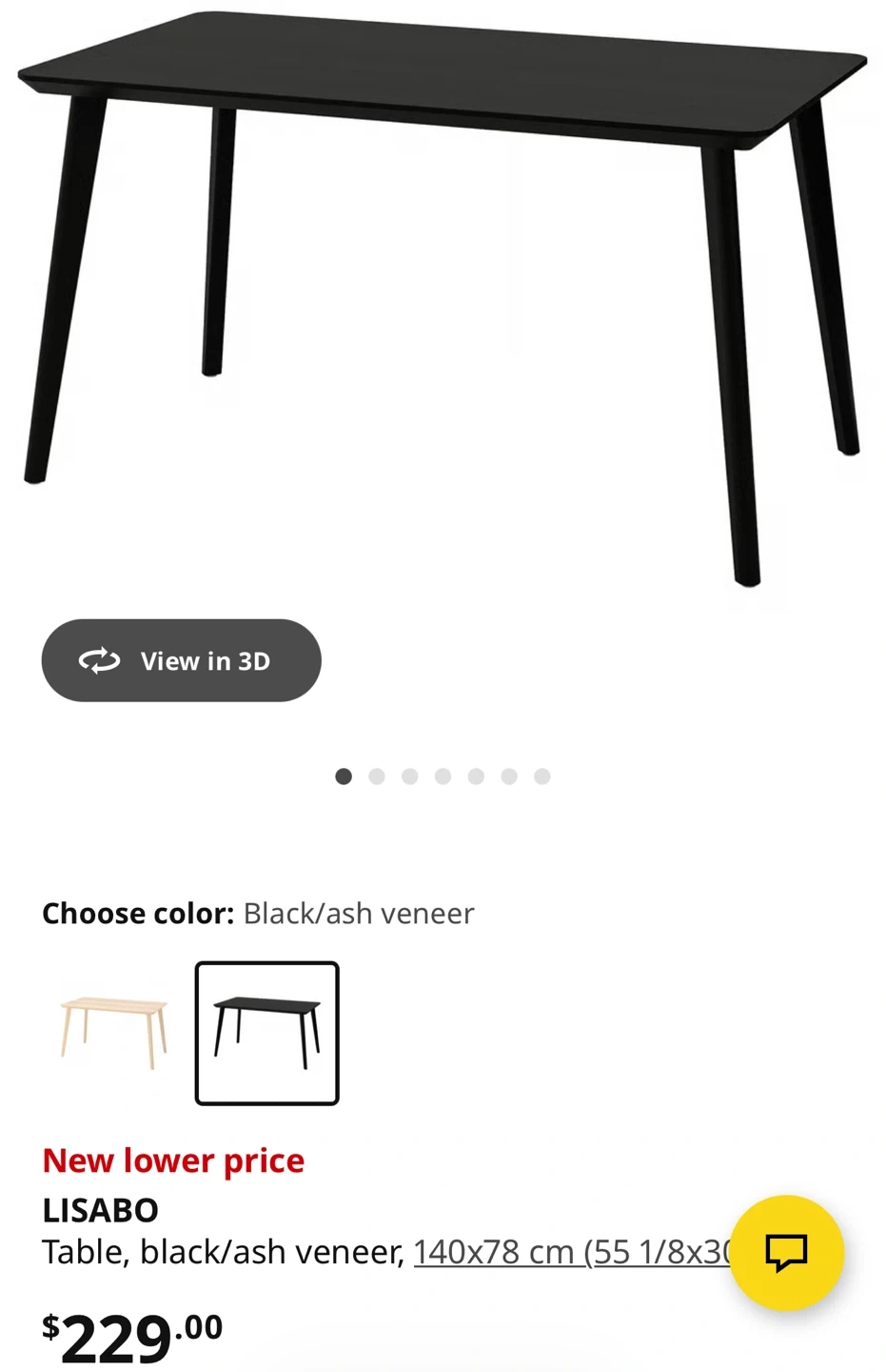 Selling an IKEA LISABO table (140 × 78 cm) in black/ash veneer. Modern, minimalist design that fits well in dining rooms, kitchens, or as a workspace/desk. The table is sturdy, stylish, and easy to match with different chairs and décor.