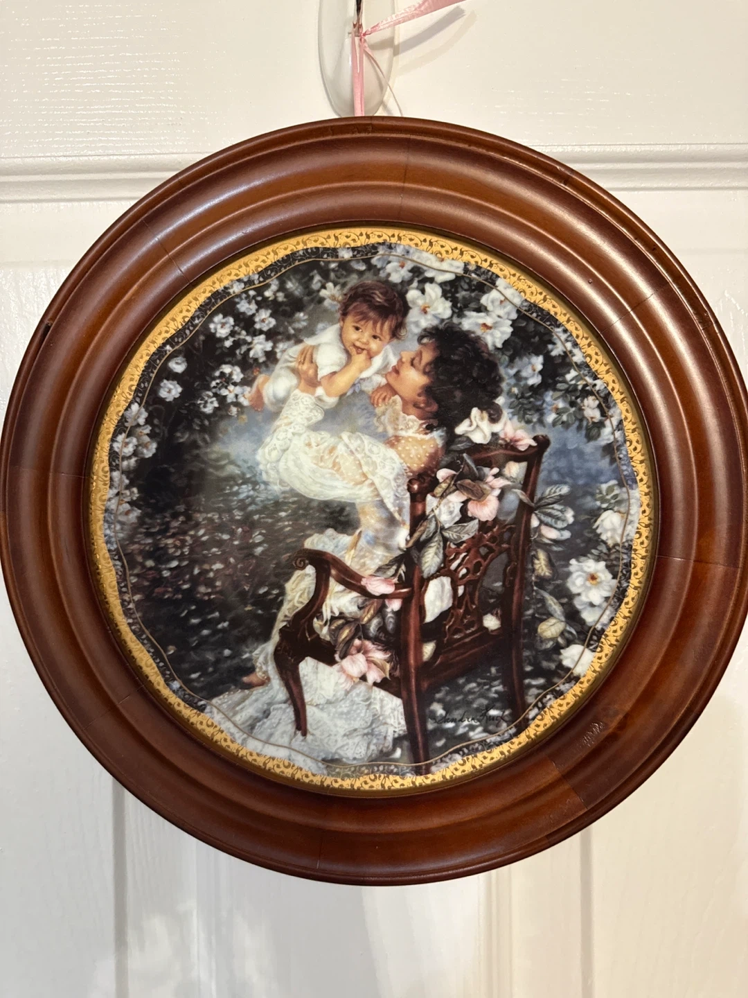 This is 'Mother's Love', first issue in the 'Reflections of Love' collection by Sandra Kuck. It's a decorative art object from 1999. This plate is from a strictly limited firing period of 95 days. Not for food use.