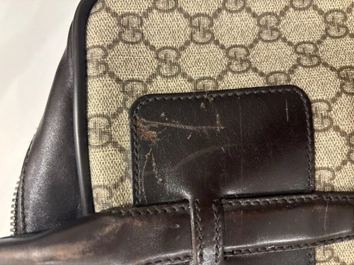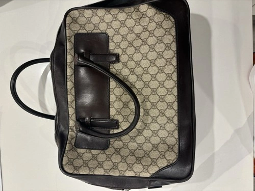 The GUCCI GG Canvas Hand Bag in Beige is a stylish addition to any woman's wardrobe. Made in Italy with high-quality canvas and PVC leather, this authentic designer handbag features the iconic Gucci GG pattern. The spacious interior is perfect for carrying all your essentials, while the classic design and neutral colour make it versatile for any outfit or occasion. Add a touch of luxury to your look with this chic Gucci handbag.