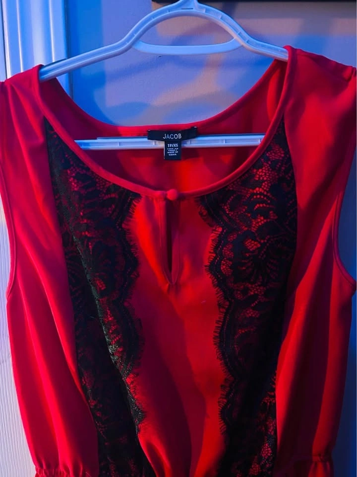 Buy & SellJacob dress - red with black lace xsJacob dress - red with black lace xs$15Red with black lace accents dress from Jacob in size extra small. Worn maybe once or twice so it’s in perfect condition!WHERE TO MEETCheck LocationView MapSELLERClaire BHyde Park100 reviews0 chats·0 favorites·0 viewsSEND CHAT TO SELLERHi Claire B! I’m interested in your listing.Hi Claire B! I’m interested in your listing.Get the Karrot app to chatSign In to chat