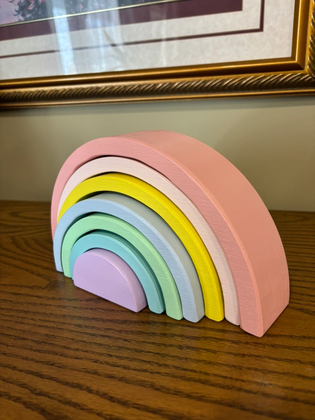 π’ With the 7-piece wooden rainbow, you can use your imagination with your children to create creative shapes.