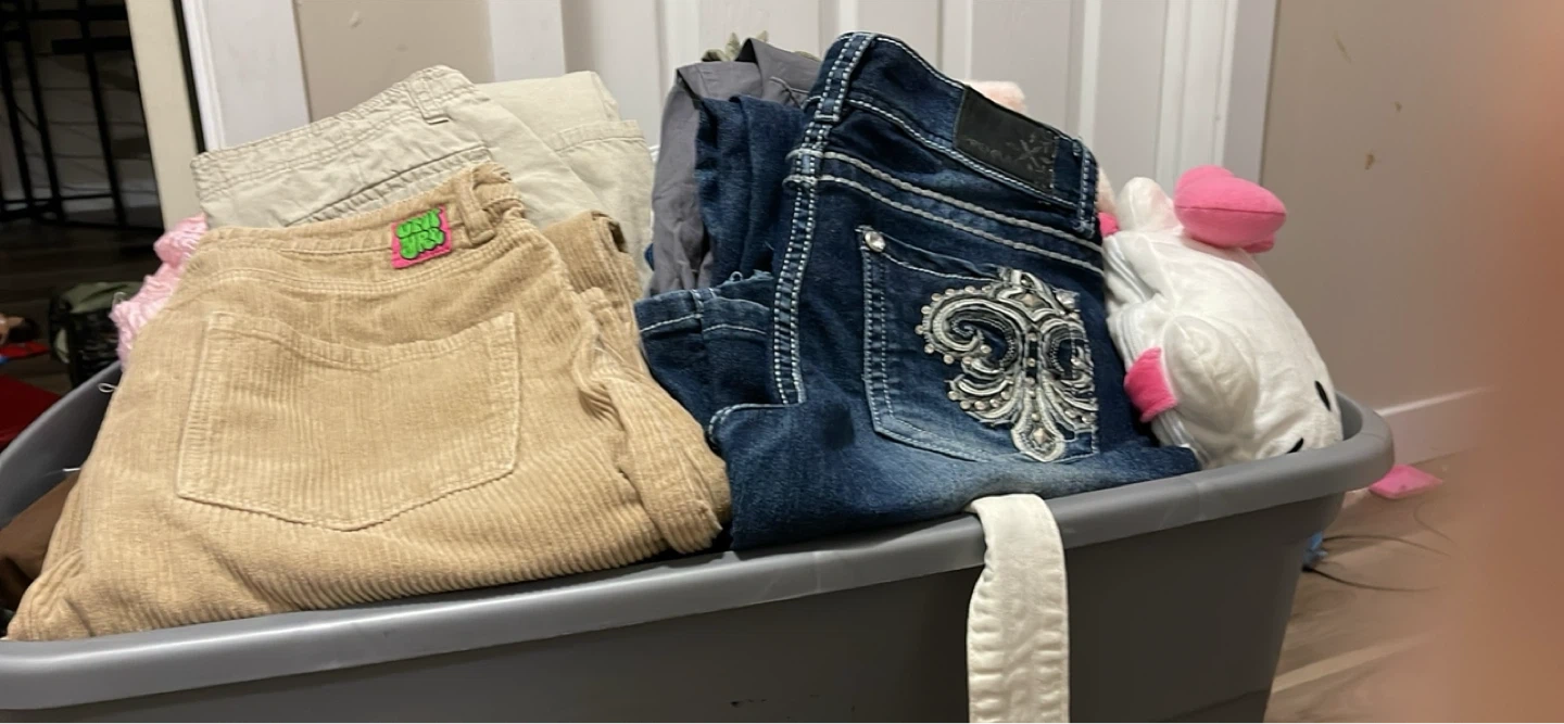 Shirts, pants, skirts, sweaters, jeans, tank tops