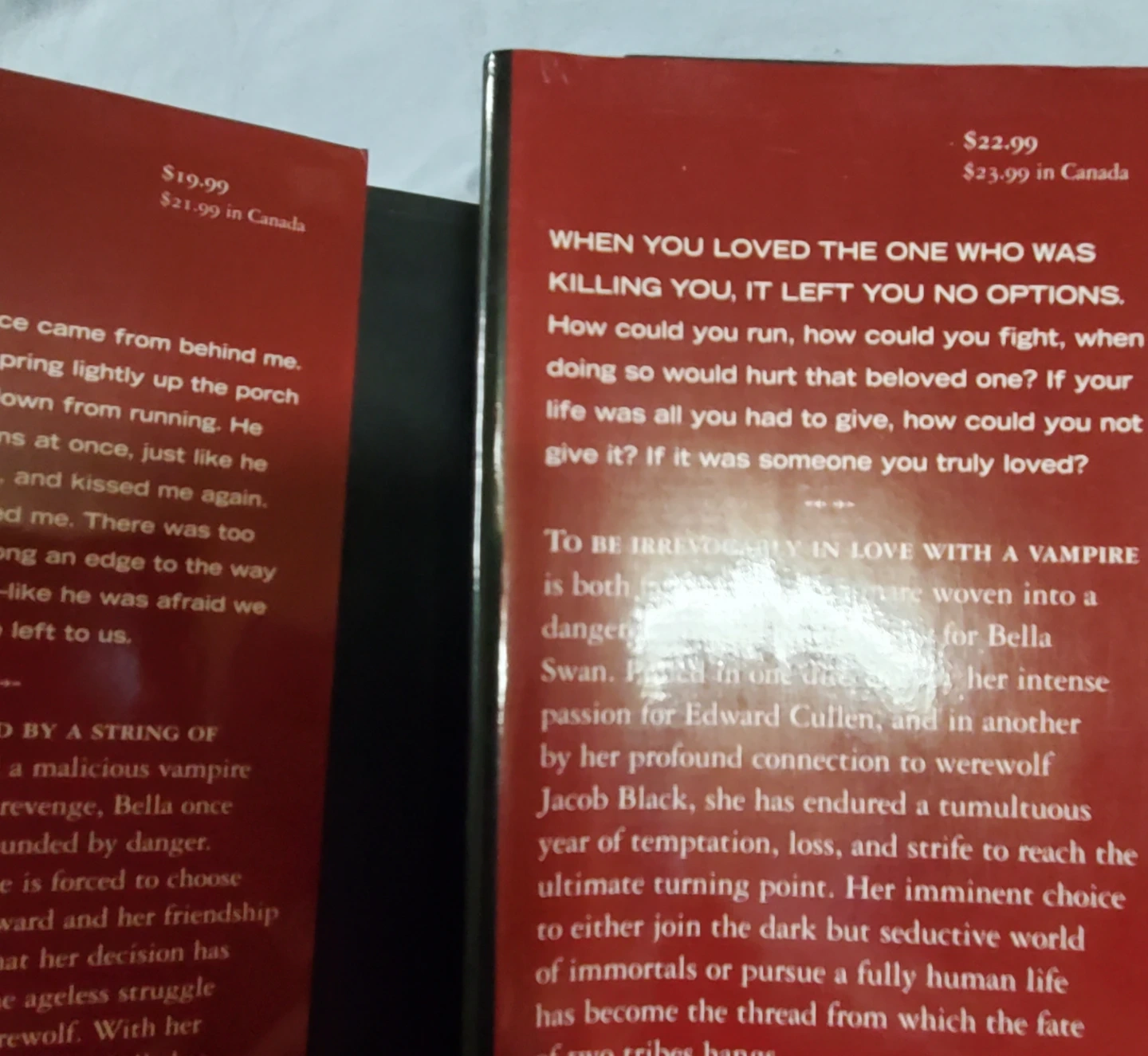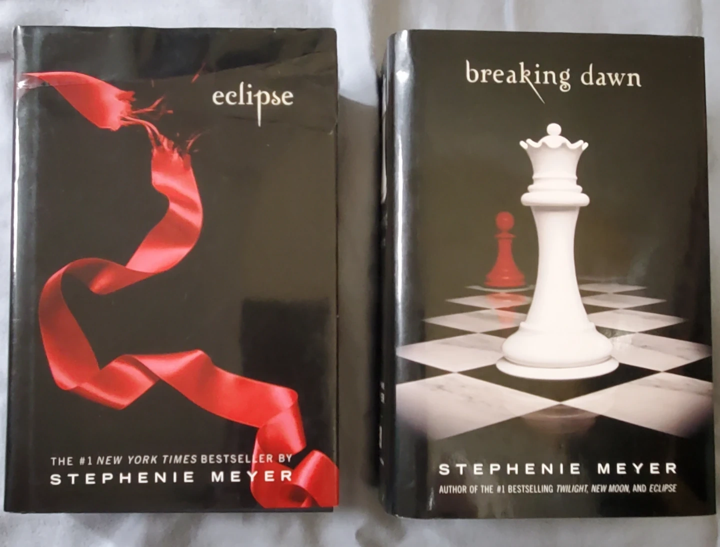 This is the complete Twilight Saga book series by Stephenie Meyer. It includes Twilight, New Moon, Eclipse, and Breaking Dawn. These are hardcover editions. In excellent condition! $90 value for you, $45 + freebie Jane bookmark!