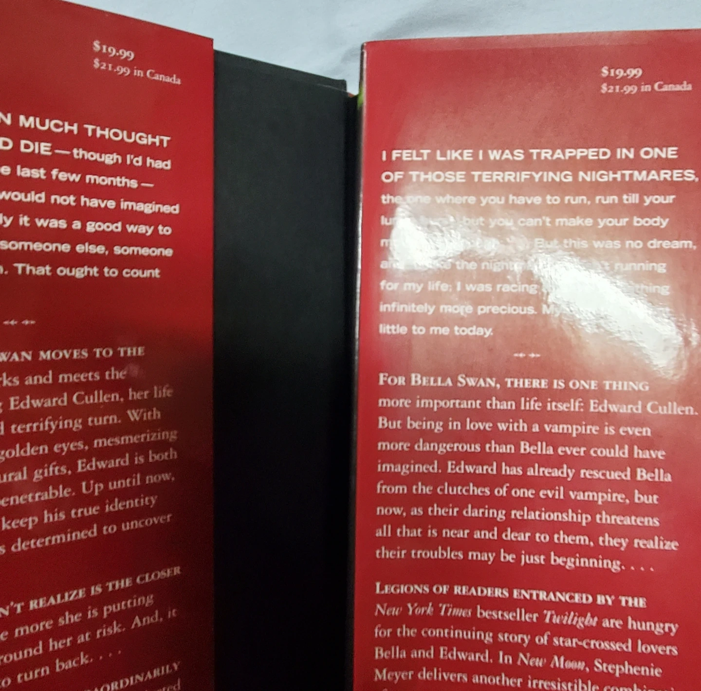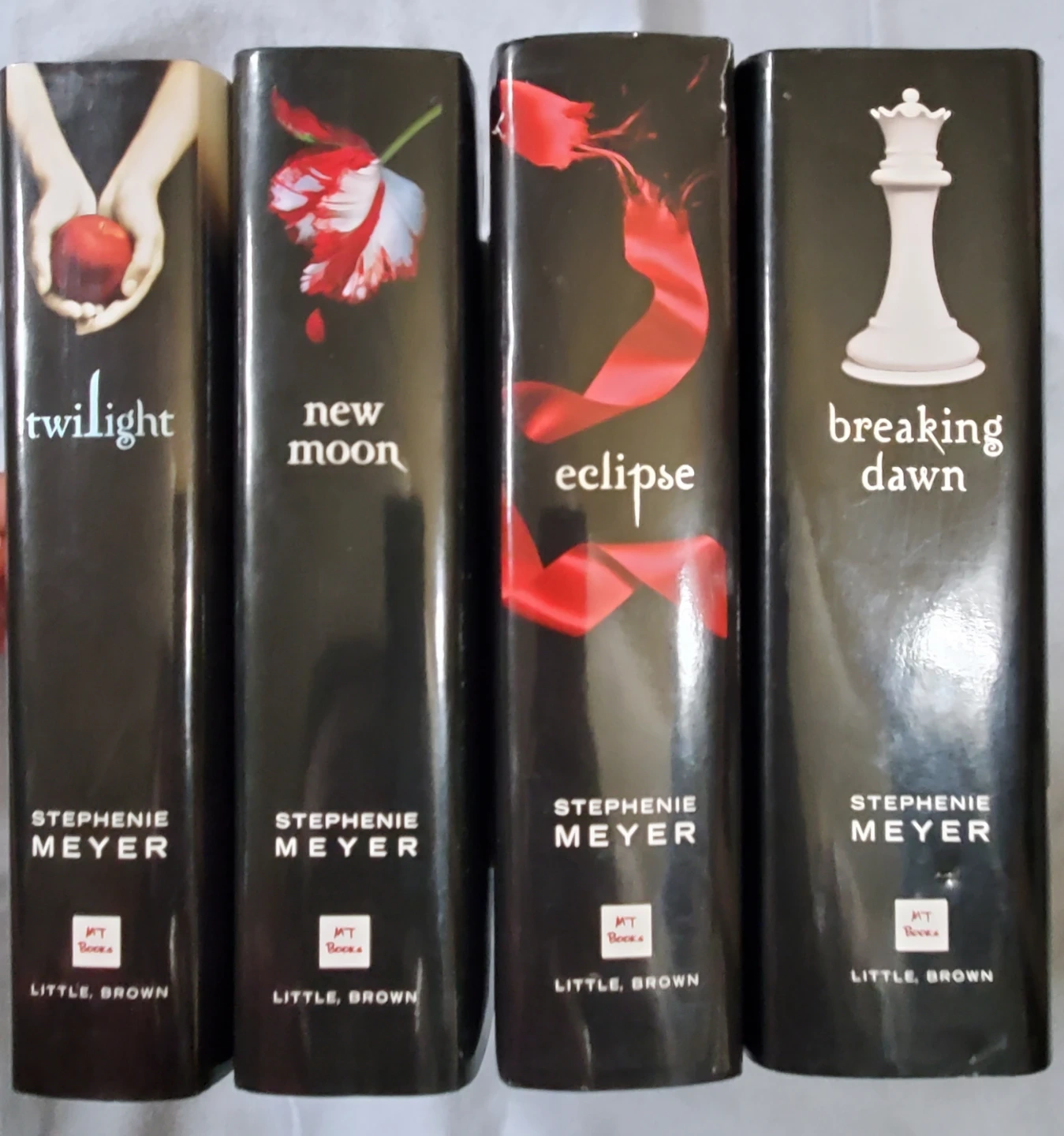 This is the complete Twilight Saga book series by Stephenie Meyer. It includes Twilight, New Moon, Eclipse, and Breaking Dawn. These are hardcover editions. In excellent condition! $90 value for you, $45 + freebie Jane bookmark!