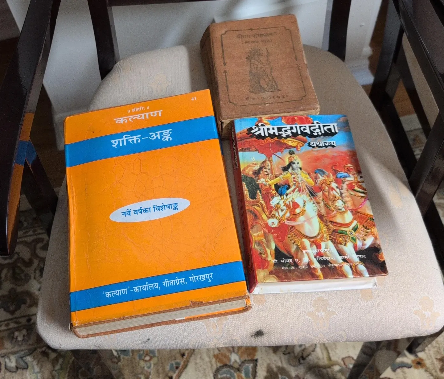 This lot includes a Kalyan Shakti-Ank book, the ninth annual special edition, and a Bhagavad Gita book. The Kalyan book is published by Kalyan Karyalay, Geetopress, Gorakhpur.