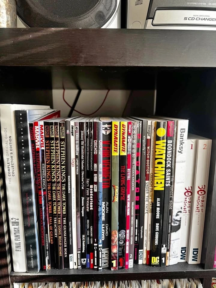 Selling my collection of graphic novels and trade paperbacks, all unread and in excellent condition. The only slight imperfection is some minor sun fading on the spines of the Hack/Slash Omnibus volumes—everything else is like new.