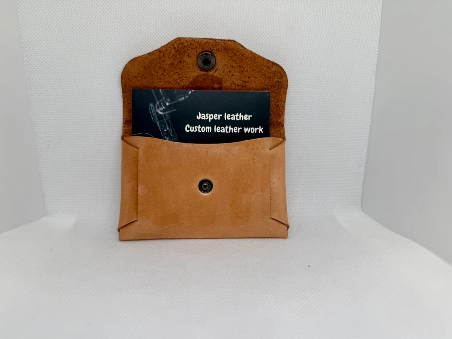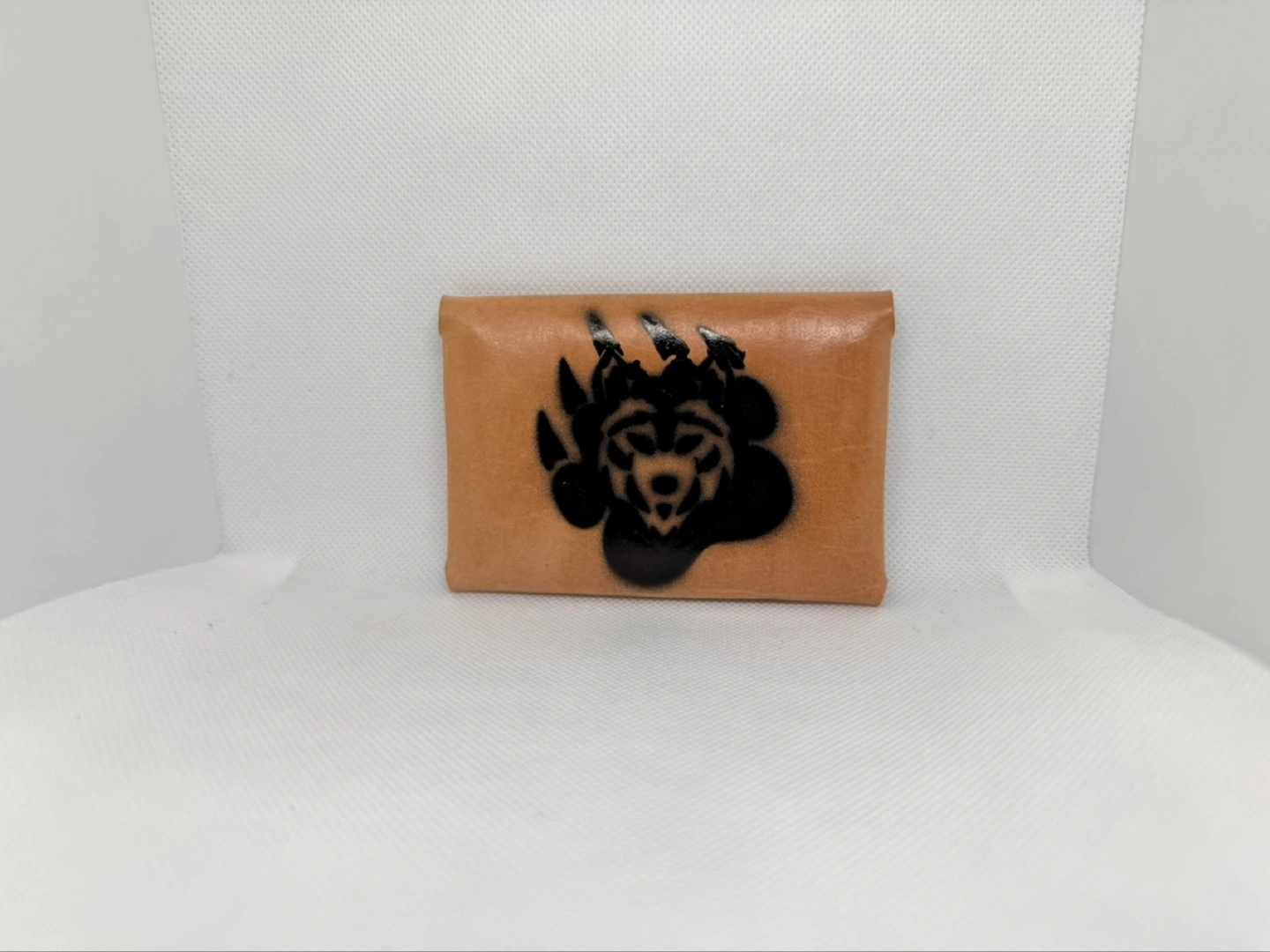 Handmade leather card holder. Features a unique bear paw design. Compact and functional. Snap closure. Excellent for everyday carry.