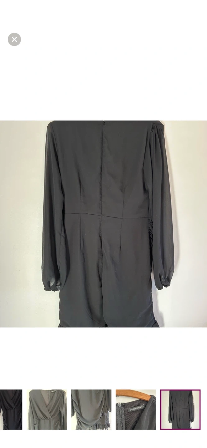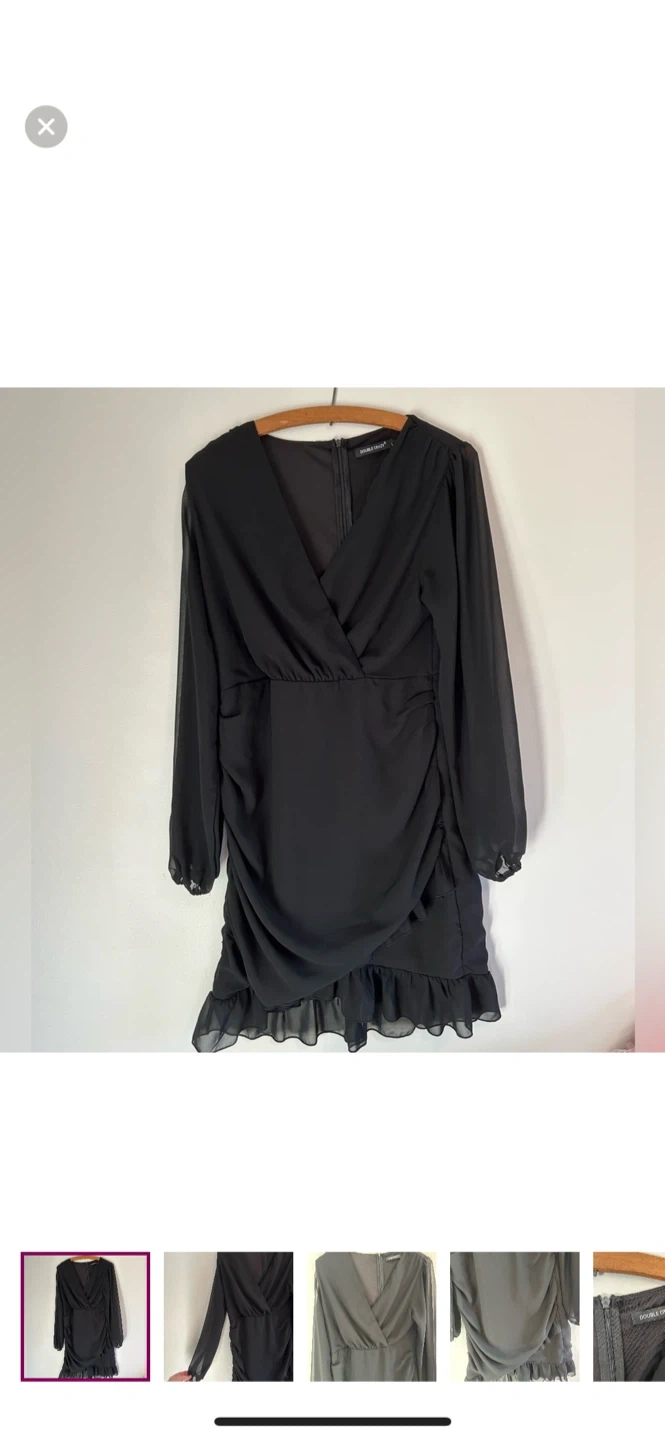 Double crazy brand. Long sleeve vneck bodycon mini dress. Black in colour. Size large. Brand new condition