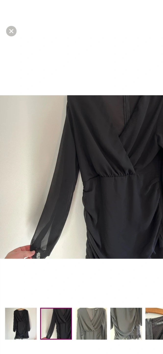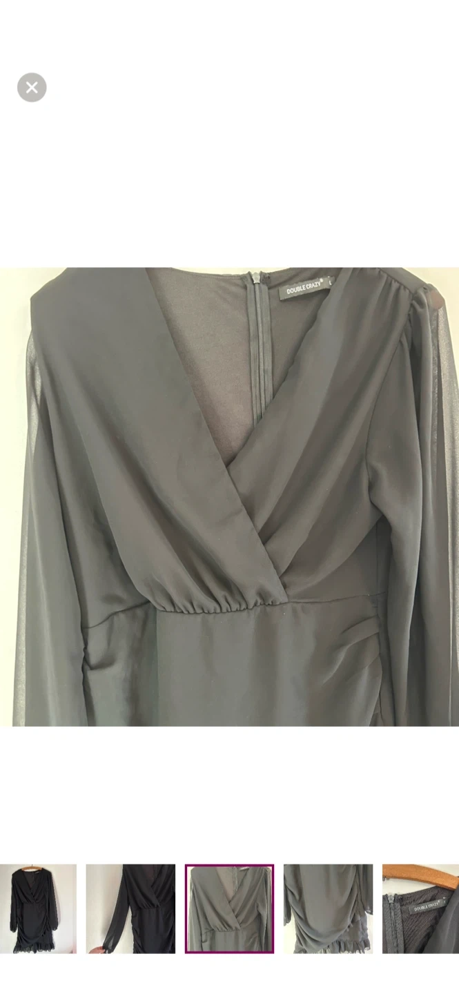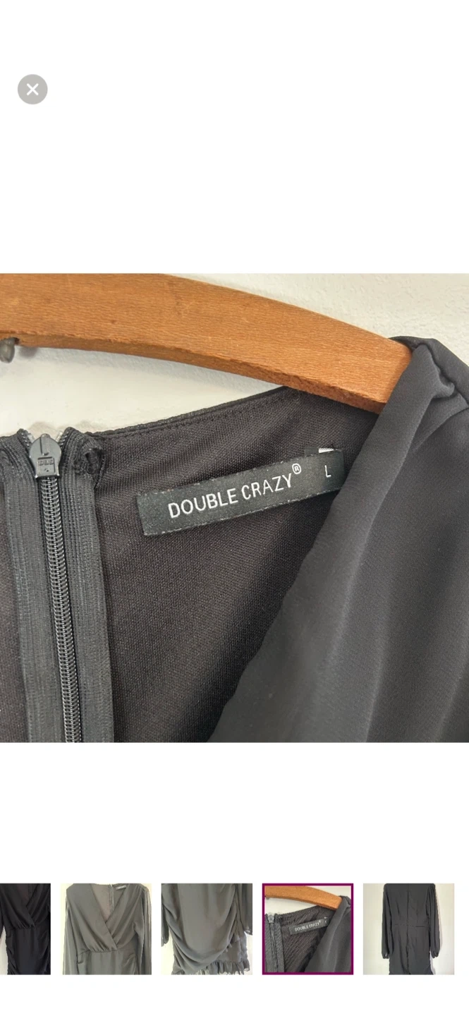 Double crazy brand. Long sleeve vneck bodycon mini dress. Black in colour. Size large. Brand new condition