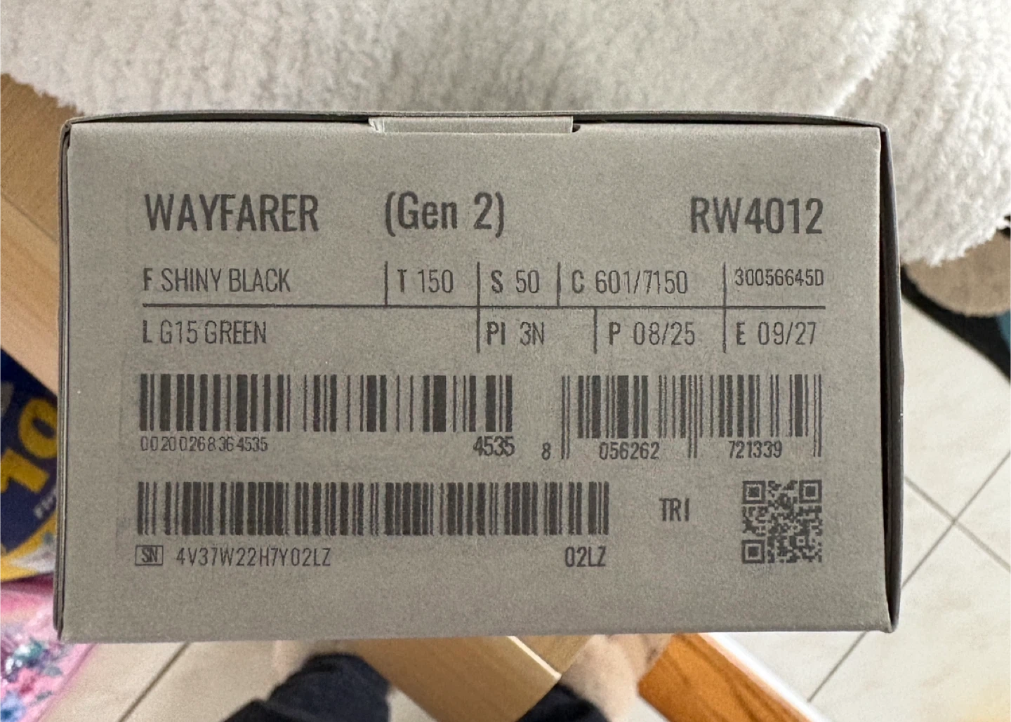 These are brand new Ray-Ban Wayfarer (Gen 2) sunglasses. They're shiny black with G15 green lenses. The frame size is 50(standard)