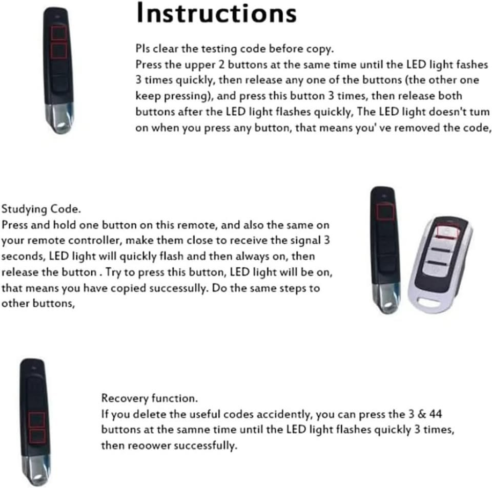 【-- 】Garage remote duplicator can clone up to 4 remote control buttons from the same or different remote control, and each corresponding letter (a, b, c, d) can open a different remote control key. Say goodbye to carrying multiple keys and remotes!