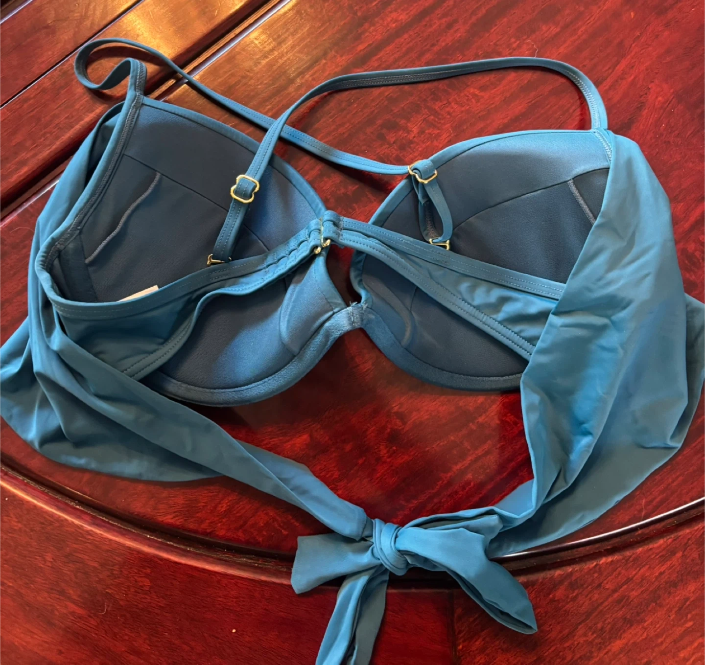 Teal bikini top by La Vie en Rose Aqua. Size medium. It features adjustable straps and gold-tone hardware. Great for your next beach trip!