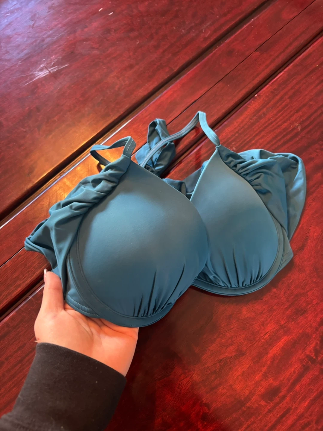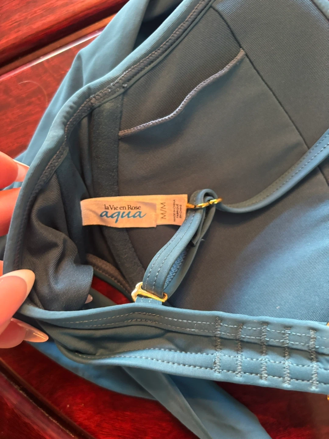 Teal bikini top by La Vie en Rose Aqua. Size medium. It features adjustable straps and gold-tone hardware. Great for your next beach trip!