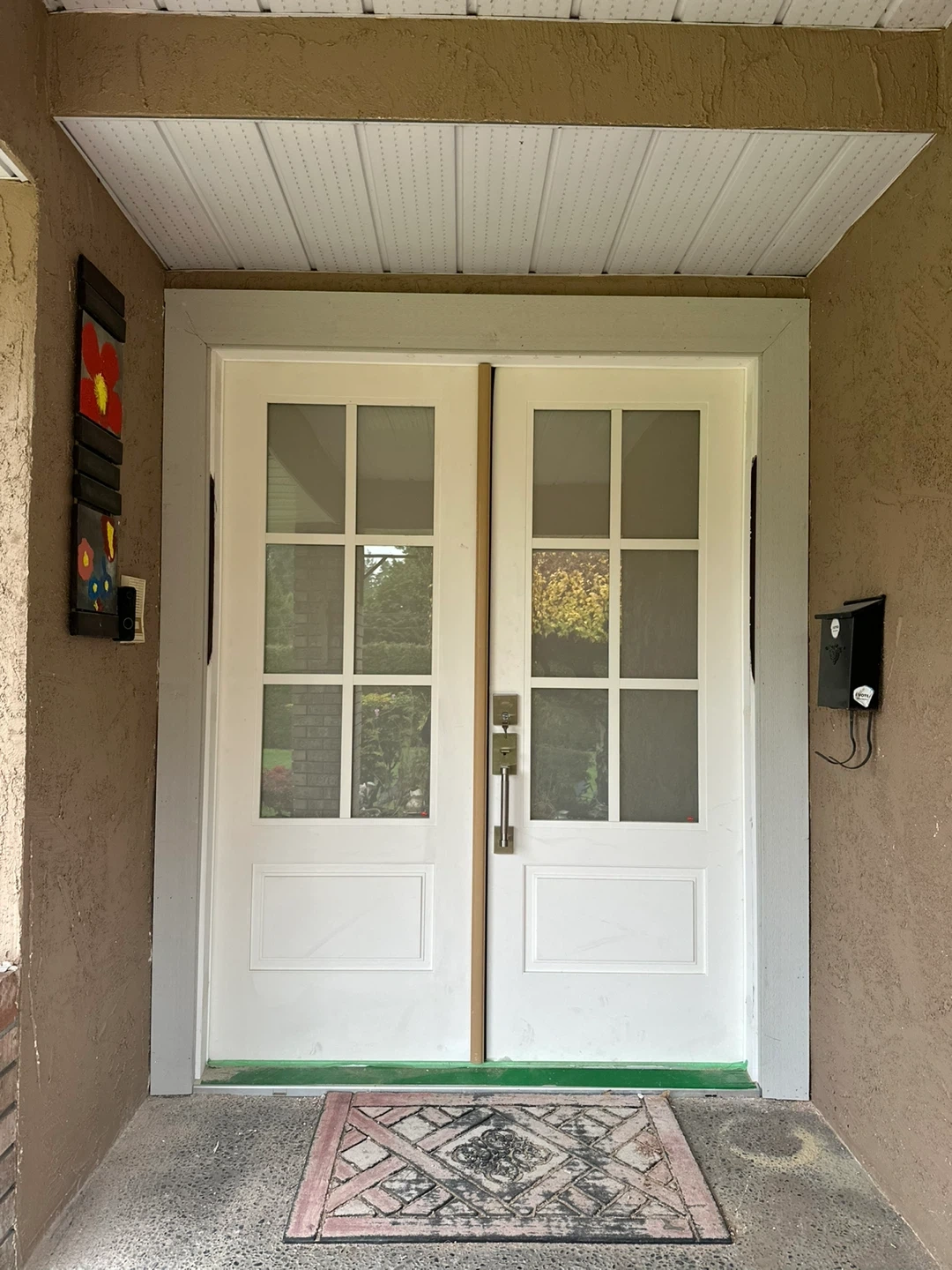 A selection of interior and exterior doors are available for your home. This includes white paneled interior doors, a modern wooden exterior door, and double glass doors. Installation available as well. Thank you