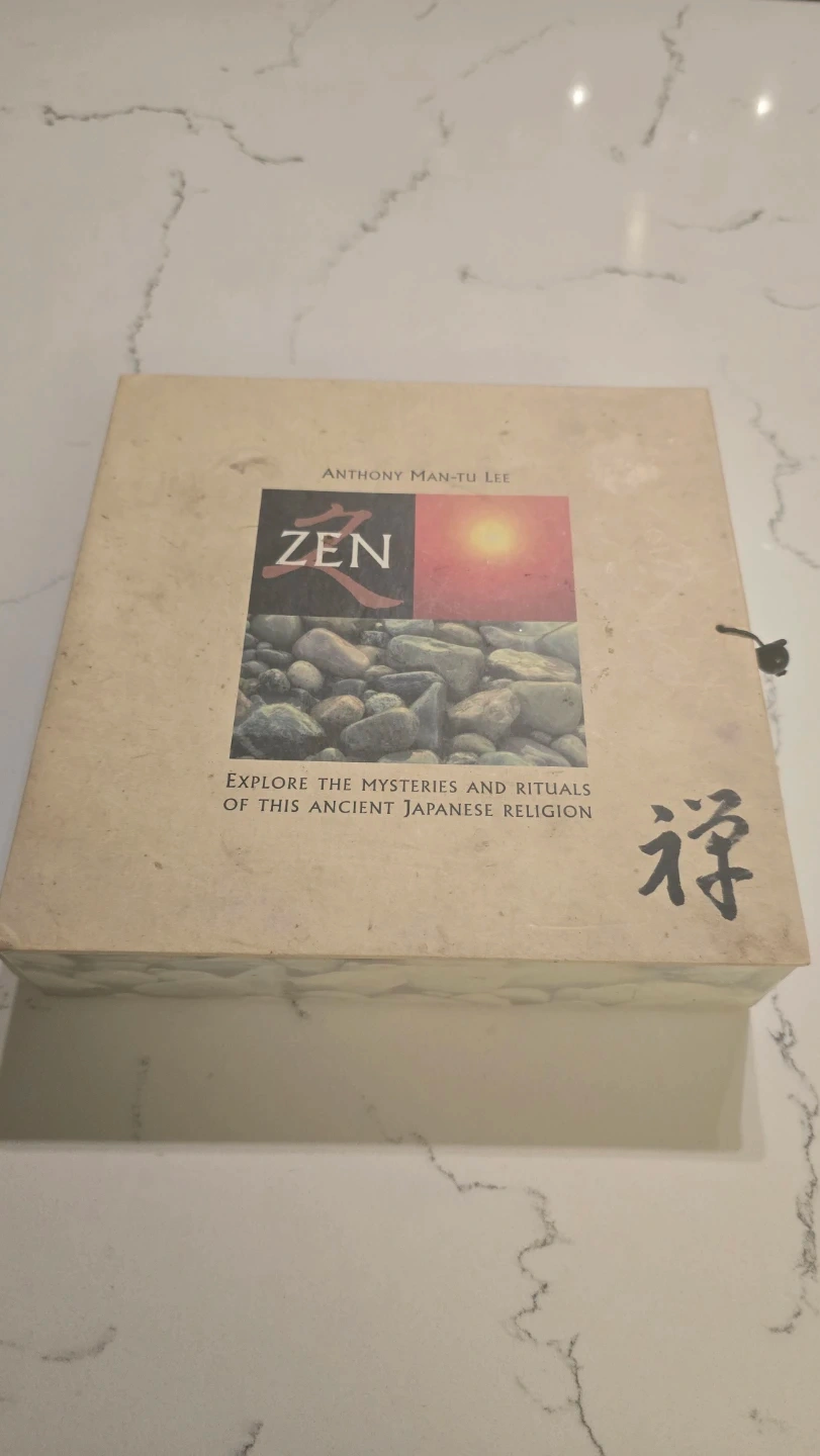 Explore the mysteries and rituals of Zen Buddhism with this gift-kit. It includes a book by Anthony Man-Tu Lee, smooth meditation stones, incense, a small mirror, and tea light candles for a peaceful atmosphere. This set's perfect for anyone looking to deepen their understanding of Zen.