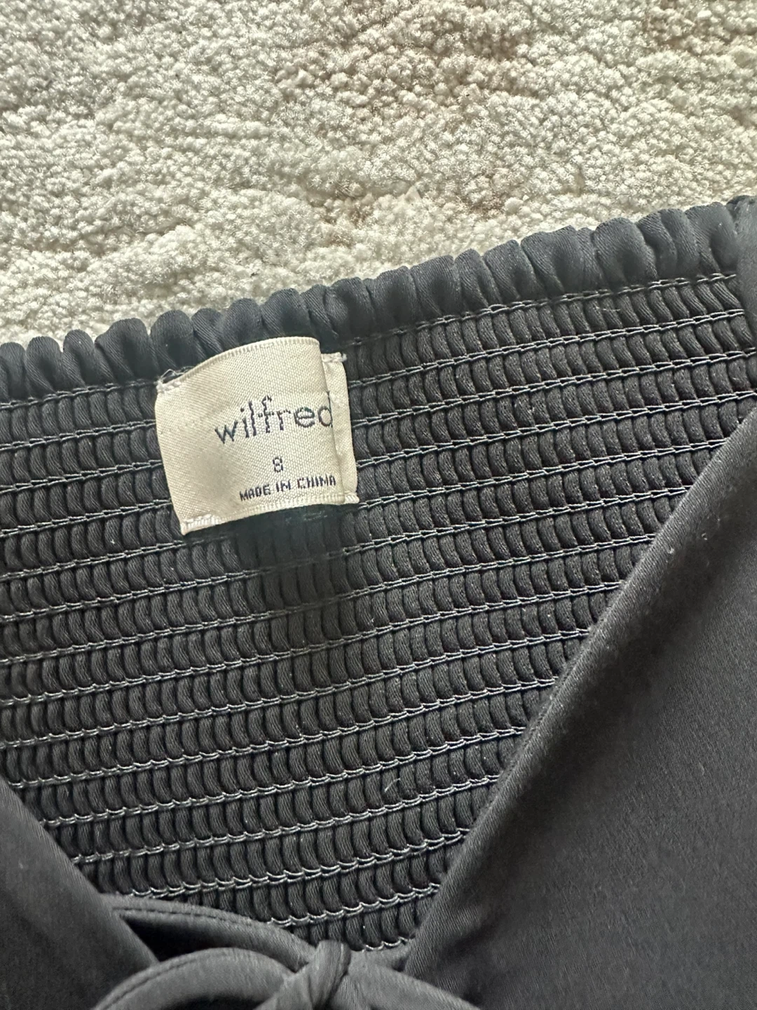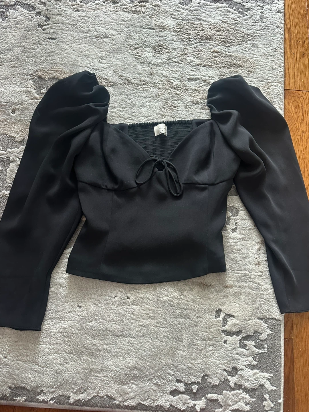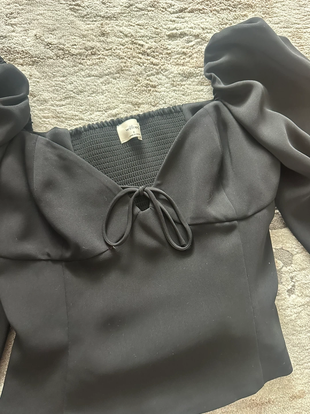 Buy & SellWilfred Black Puff Sleeve Tie-Front Top Size 8Wilfred Black Puff Sleeve Tie-Front Top Size 8$35This Wilfred black top features a shirred bust and dramatic puff sleeves. It has a tie-front detail at the neckline. Size is 8.ConditionLike newBrandWilfredWHERE TO MEETCheck LocationView MapSELLERverifiedAliceHeadon Forest1095 reviews0 chats·1 favorites·7 viewsSEND CHAT TO SELLERHi Alice! I’m interested in your listing.Hi Alice! I’m interested in your listing.Get the Karrot app to chatSign In to chat