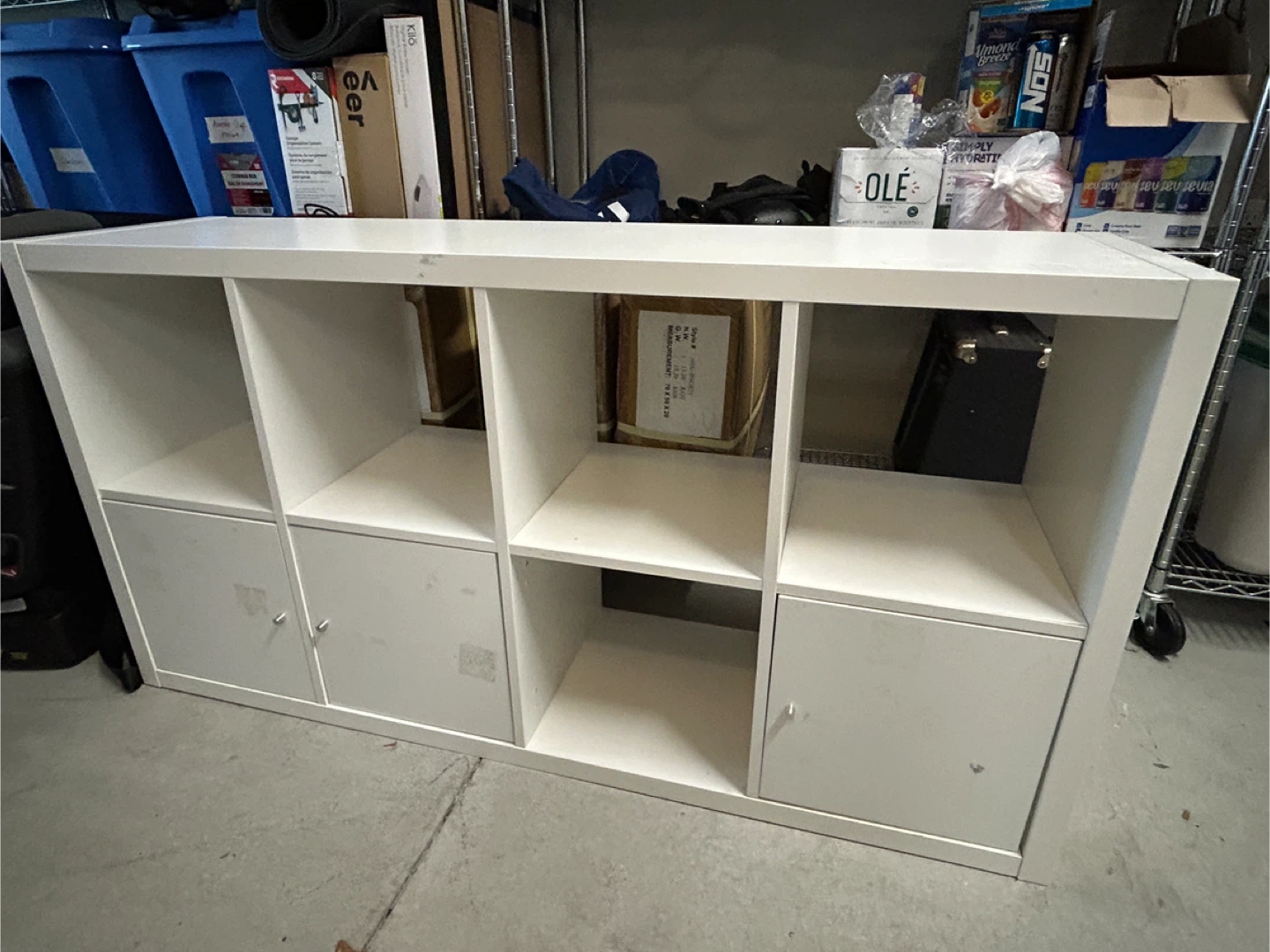 Selling a white IKEA Kallax shelf unit. It's a great storage solution and can be used in many different ways. There are some signs of use.