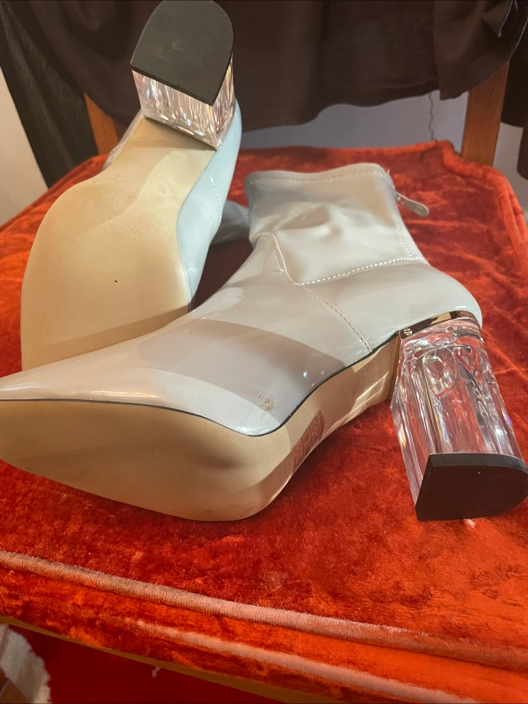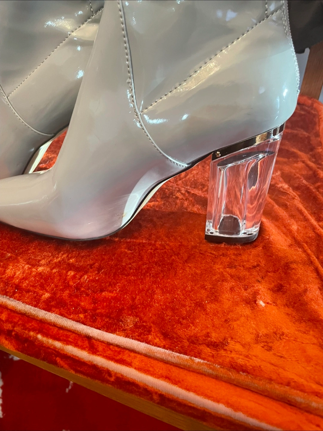 Acado light grey ankle boots feature a unique clear heel design. They're in good condition and ready for a new home! They would make a great addition to your wardrobe for a night out or a special occasion.