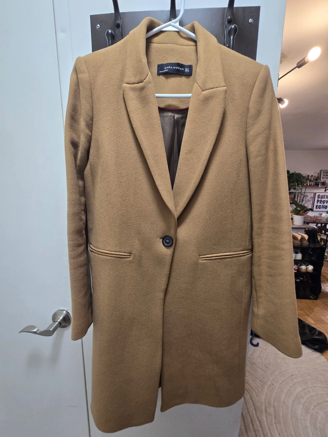 Selling a Zara Woman coat in size M. It's a stylish brown colour and made from a wool blend, perfect for cooler weather! It's in great condition and ready for a new home