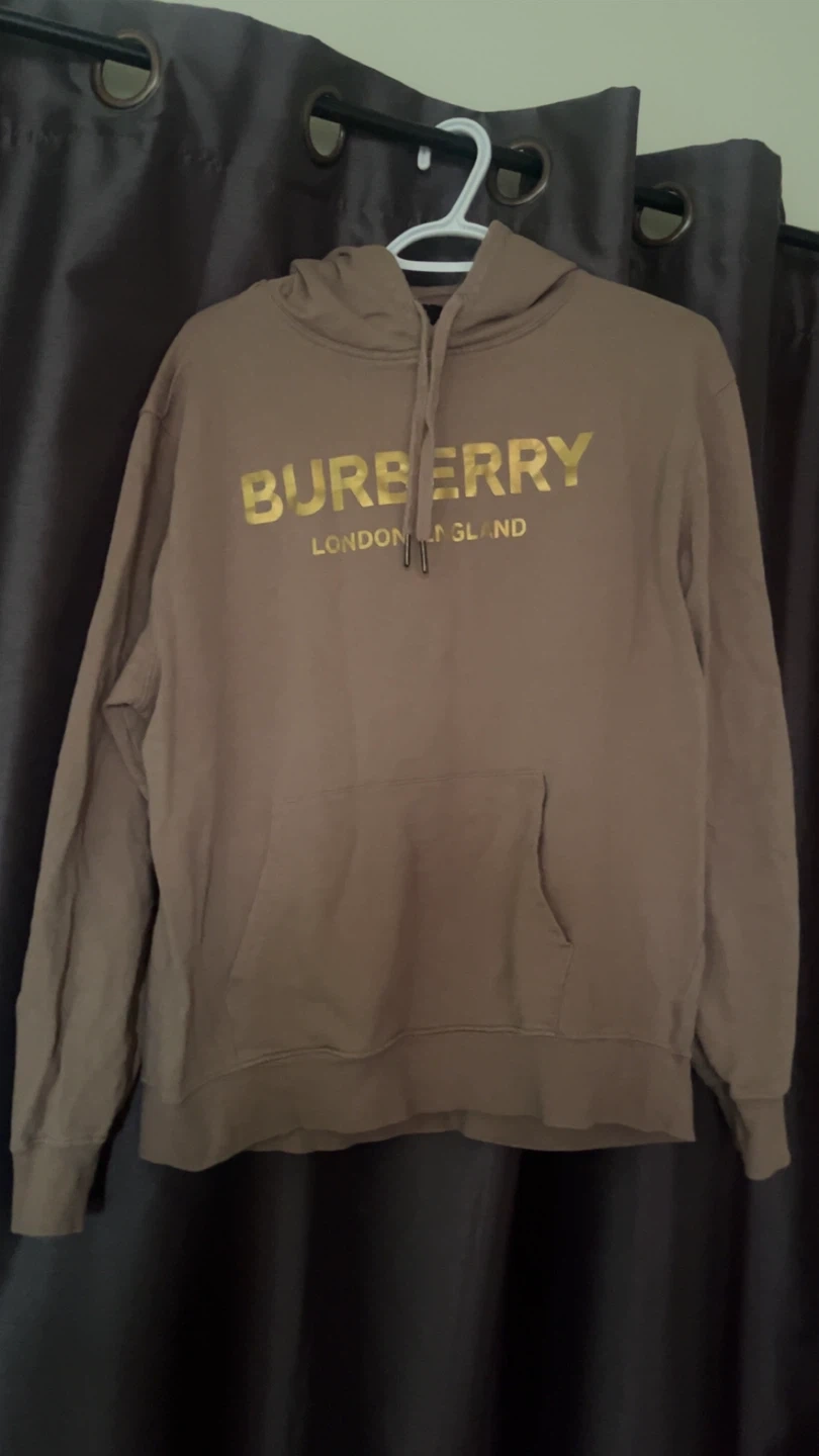 Burberry hoodie with "BURBERRY LONDON ENGLAND" text and a front pouch pocket. It's a stretchy and comfortable and stylish piece. Cotton blend fabric.