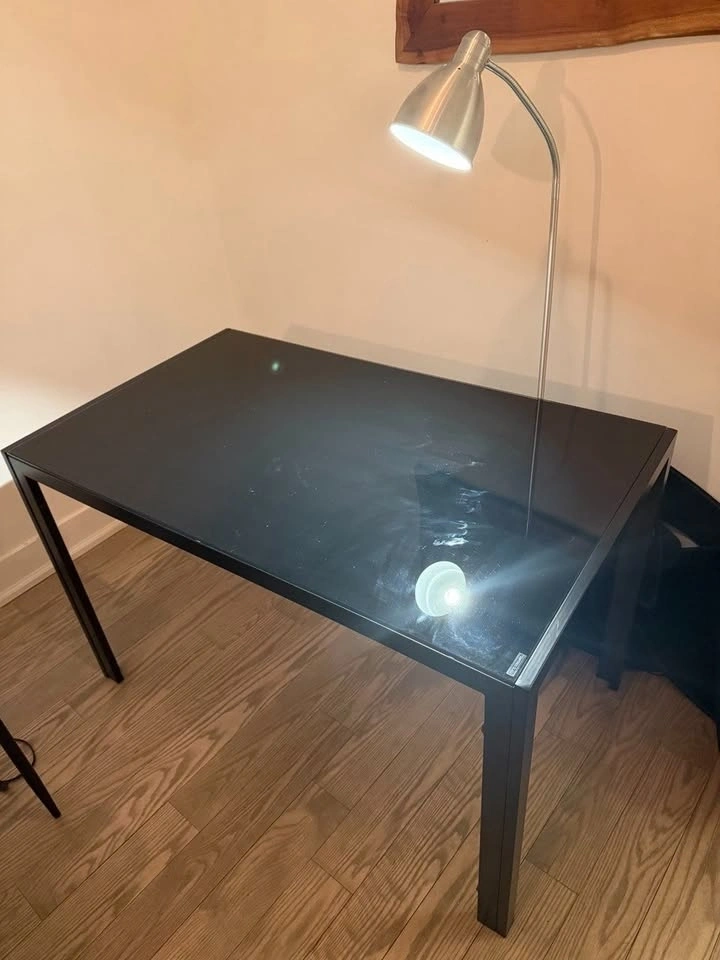 Used dining table with four chairs. Table is in good condition with minor surface scratches that are hard to see. Chairs are OK, one had a slash or two in it (Pictured). Dimensions of the table are: H: 75 CM, W: 70 CM, L: 120CM. Pick up is near Dufferin and Rogers Road.