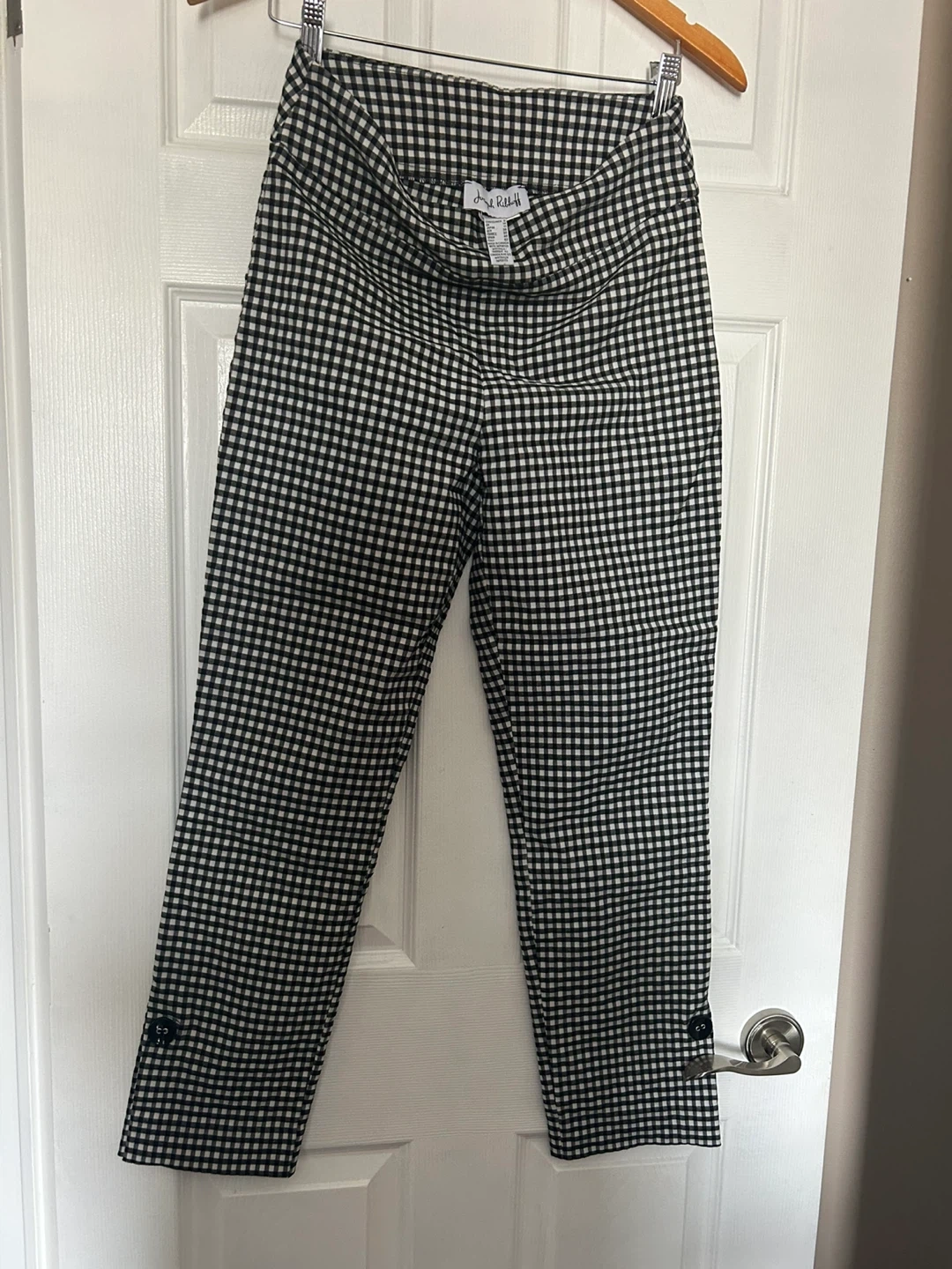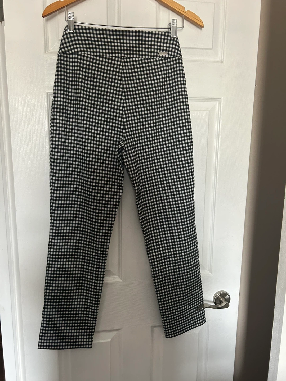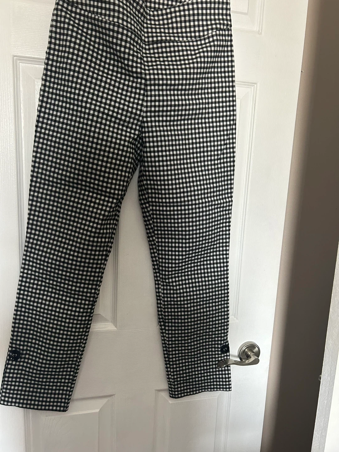 Joseph Ribkoff Cute gingham pants with button details at the hem. These pants are a size medium. Great for a casual outing!