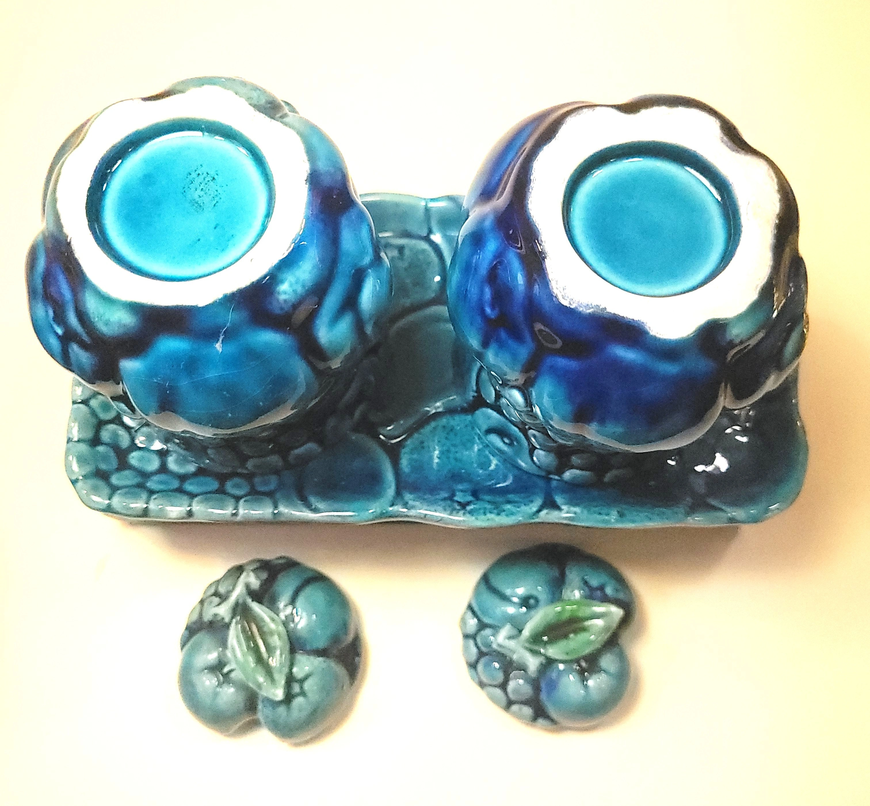 Circa 1965 Inarco Japan Mood Indigo Blue Fruit Three Piece Set