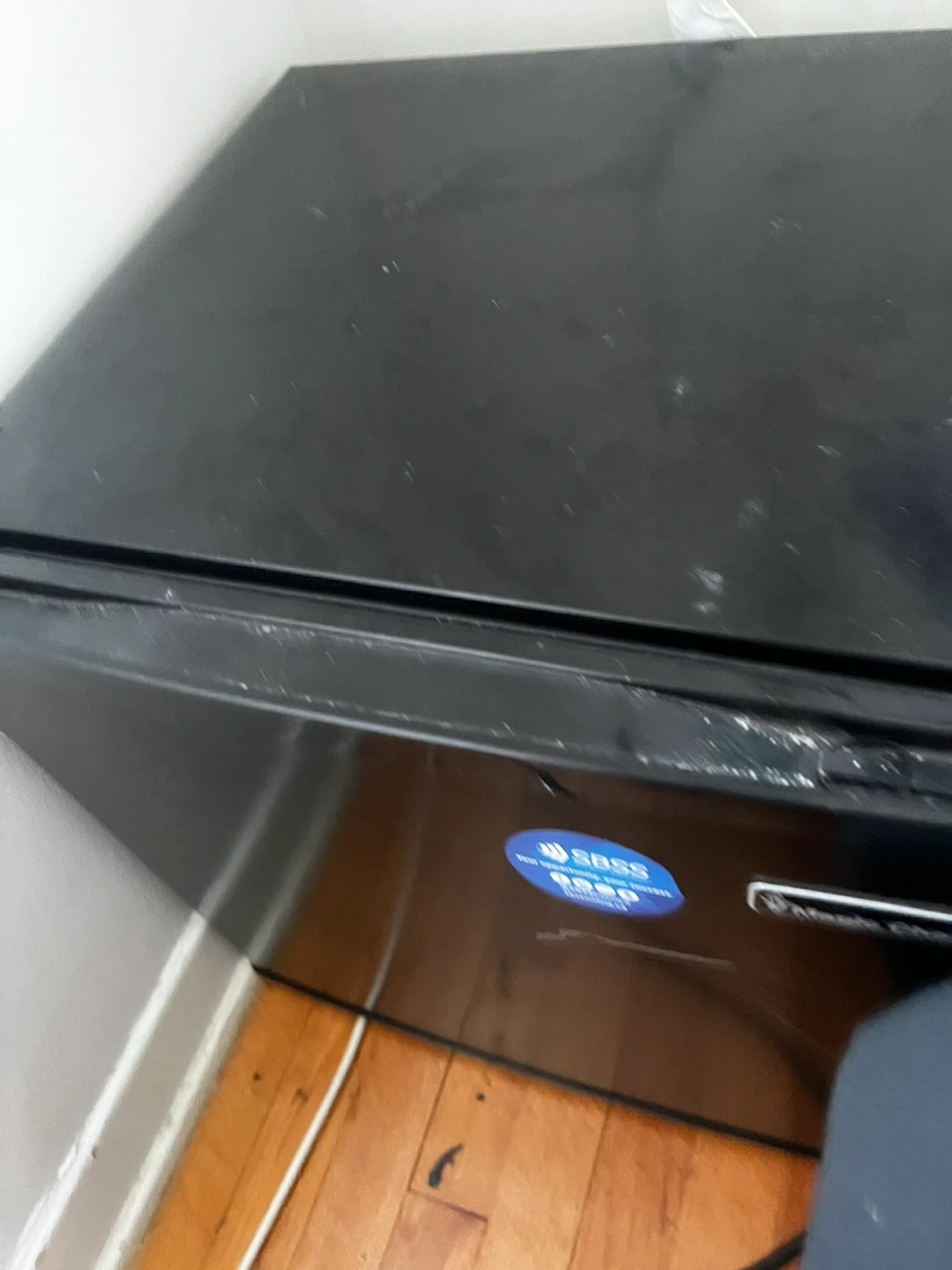 Black Magic Chef mini fridge. Comes with a wire rack inside. This compact fridge is perfect for small spaces like dorm rooms or offices.