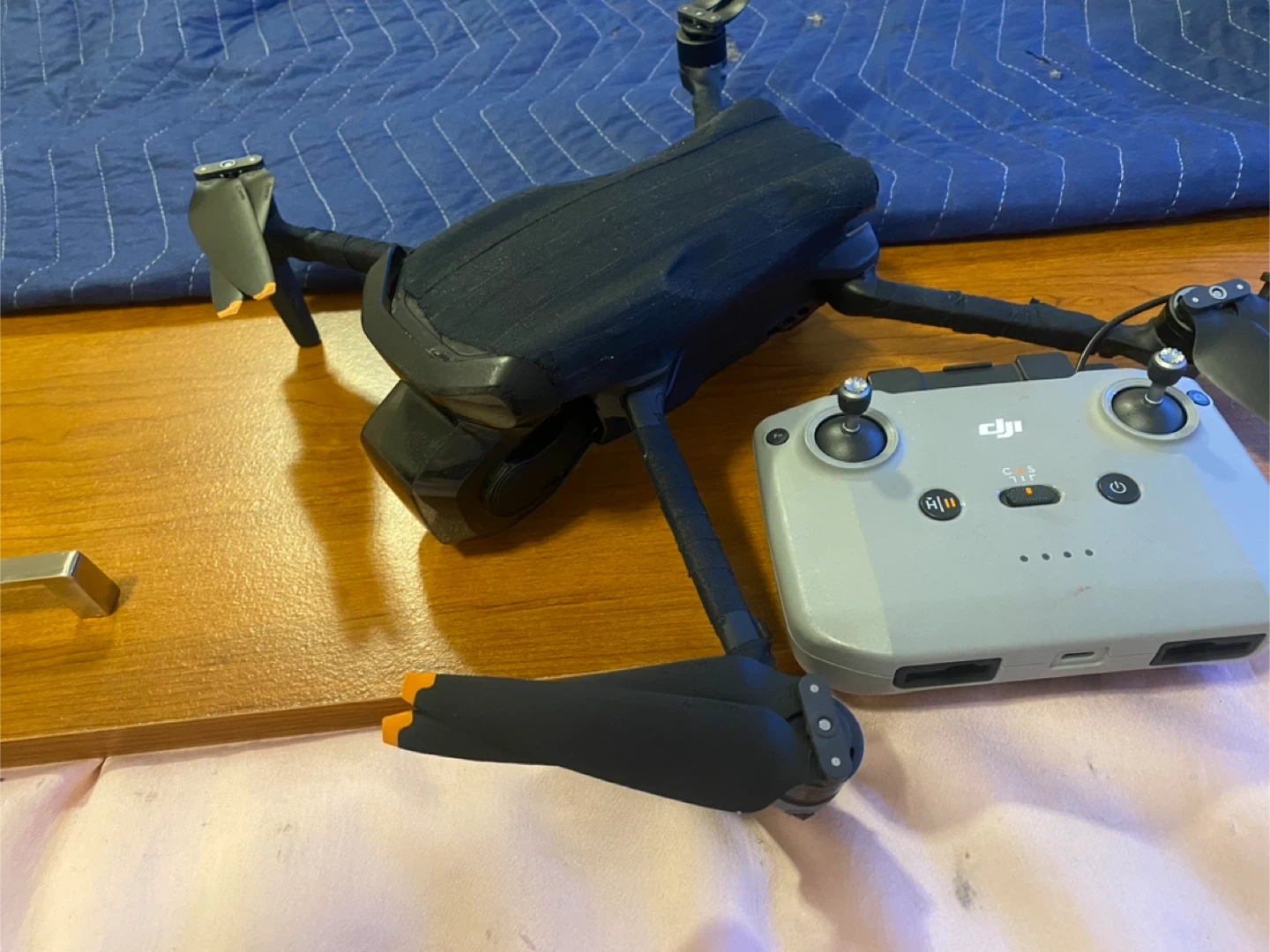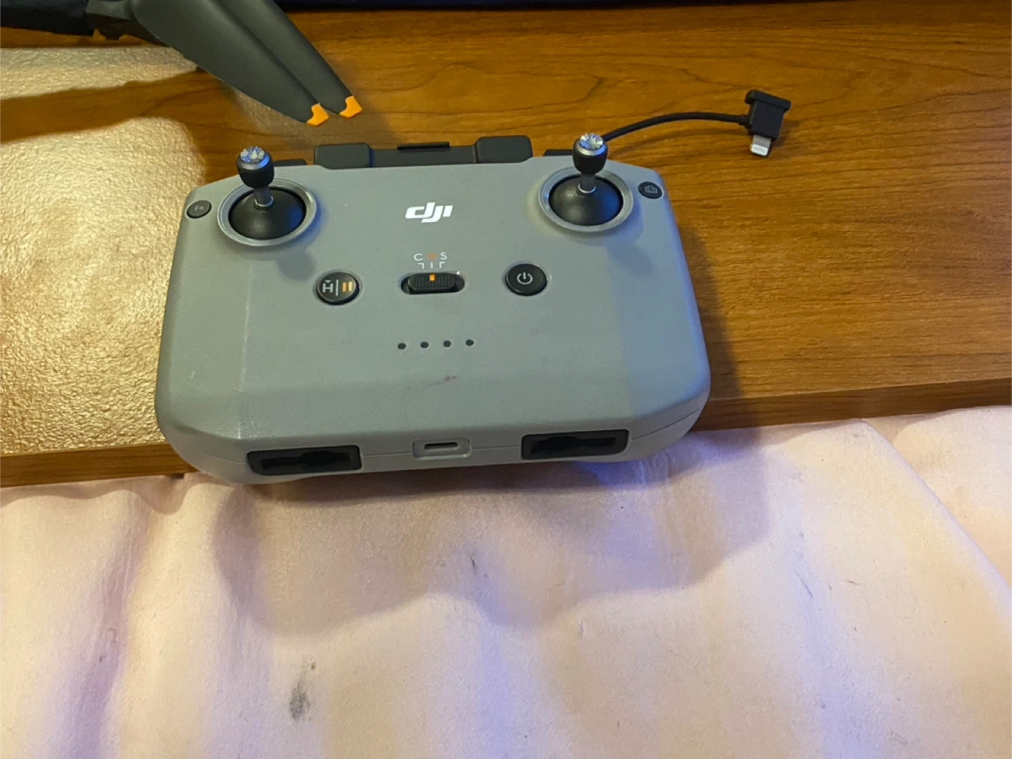 This is a DJI Air 3 s drone with remote controller It's a light grey colour and features two joysticks for control. It also includes a charging cable. This drone is custom I’ve gotten it wrapped with black protective tape for just added protection . This drone has probably the best camera you can get on a recreation drone it has LiDAR and it’s 4K recording awesome footage professional movie quality videos from this drone I bought from Best Buy $2800 I just bought another drone and I’m in need of some $ so I’m letting go of this bad boy .im gonna take a loss on it but that’s life .