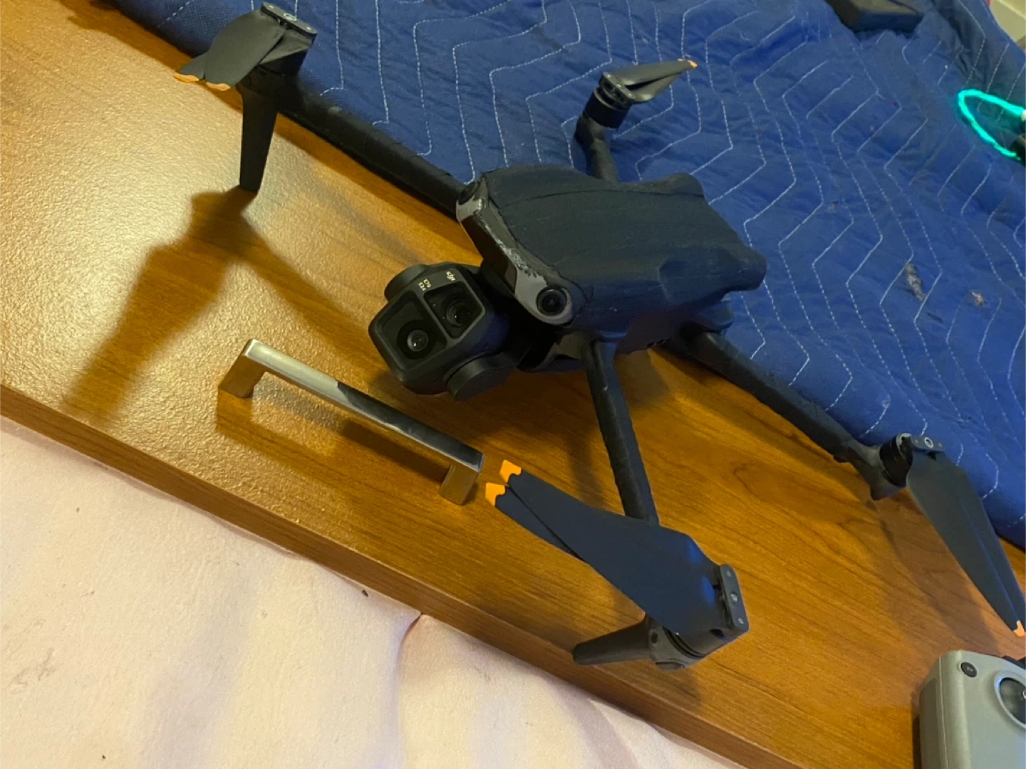 This is a DJI Air 3 s drone with remote controller It's a light grey colour and features two joysticks for control. It also includes a charging cable. This drone is custom I’ve gotten it wrapped with black protective tape for just added protection . This drone has probably the best camera you can get on a recreation drone it has LiDAR and it’s 4K recording awesome footage professional movie quality videos from this drone I bought from Best Buy $2800 I just bought another drone and I’m in need of some $ so I’m letting go of this bad boy .im gonna take a loss on it but that’s life .