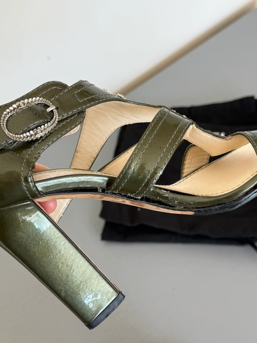 Authentic Chanel Green Patent Leather T-Strap Heels Size 36C