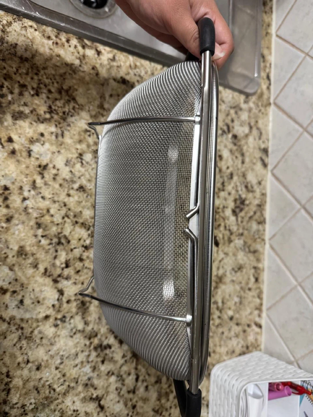 Selling a stainless steel colander! It's in good condition and perfect for rinsing fruits, vegetables, or draining pasta. It has a sturdy frame and a fine mesh, so it's great for all sorts of kitchen tasks