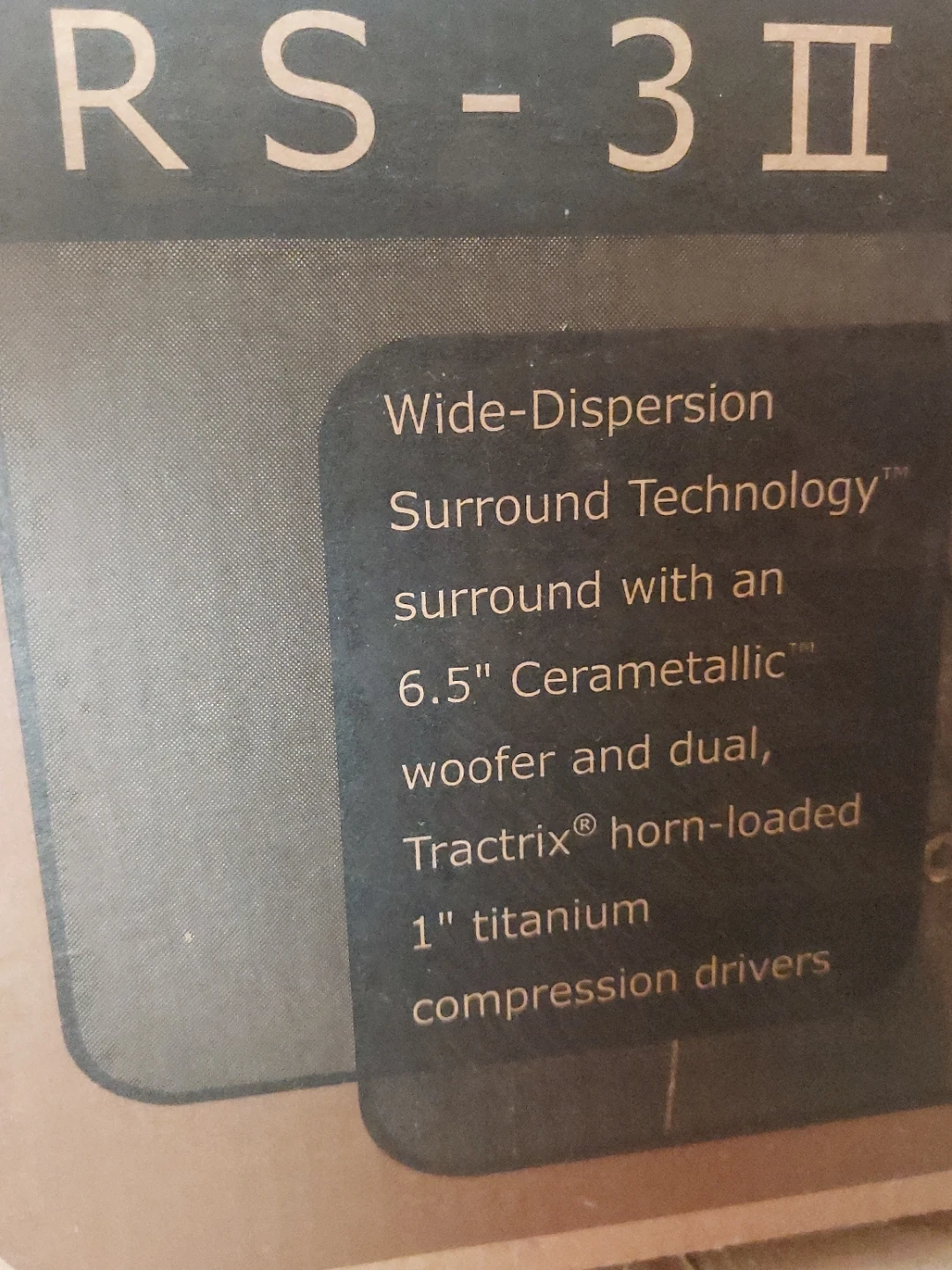 Klipsch RS-3 II Reference surround speakers with Wide-Dispersion Surround Technology. Features a 6.5" Cerametallic woofer and dual 1" titanium compression drivers. These are rear surround speakers.