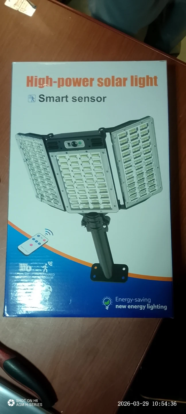 This high-power solar light features a smart sensor and includes a remote control. It's energy-saving and provides new energy lighting. Includes original box.