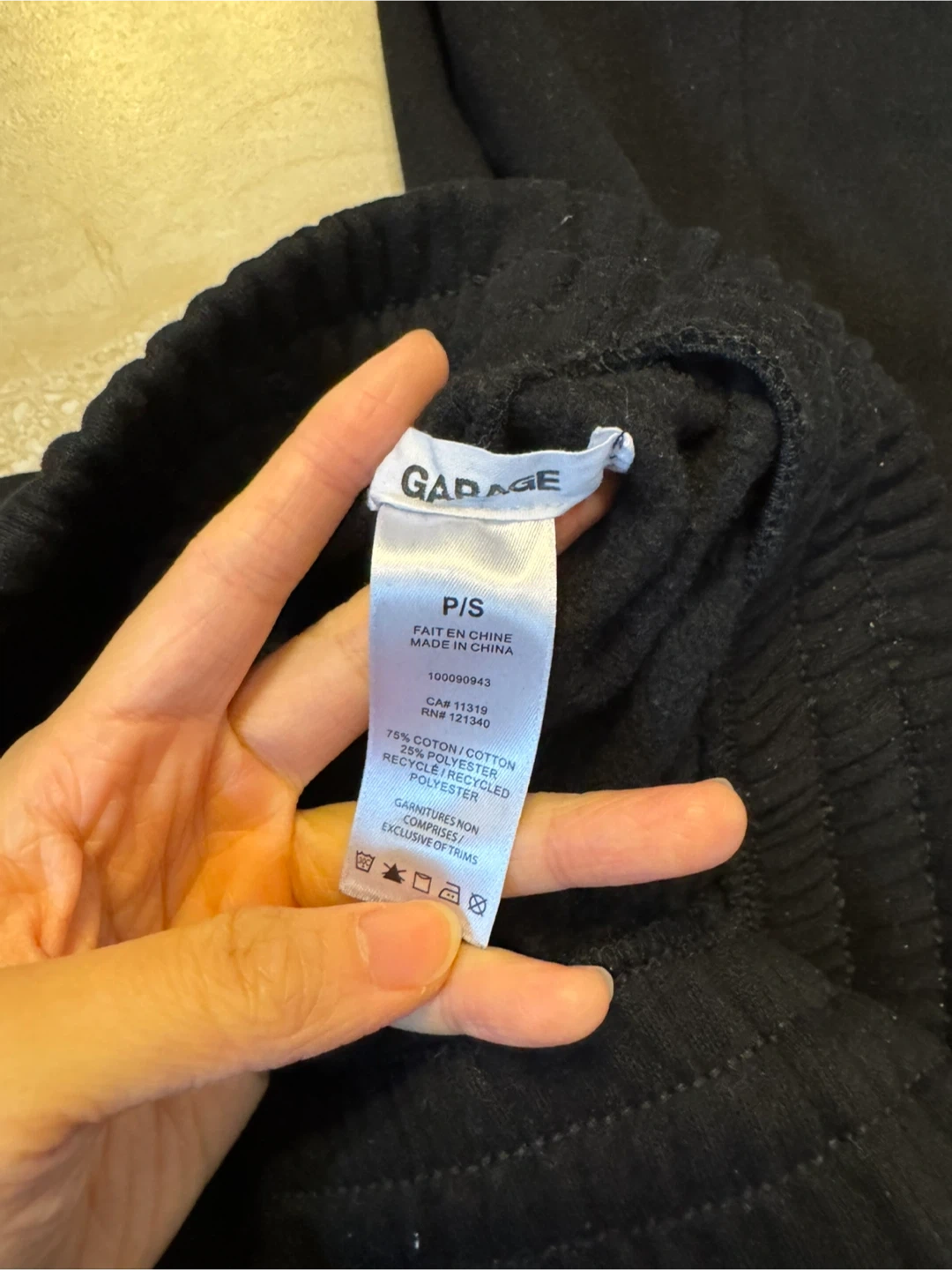 Garage black sweatpants in size P/S. Made from 75% cotton and 25% recycled polyester blend. These comfy pants are great for lounging or casual wear!