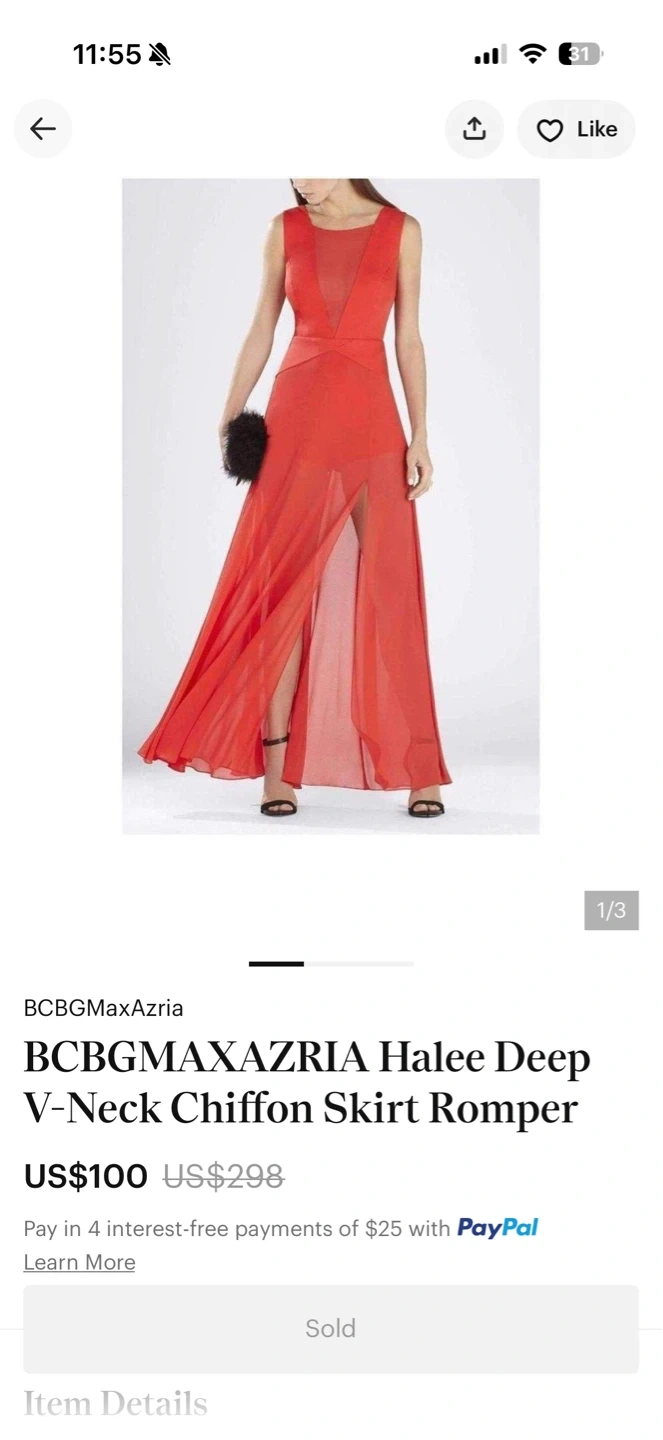 Iconic BCBG hybrid gown with sheer overlay and hidden shorts perfect for a formal event or evening out. It features a V-neckline with sheer detailing at the back and a flattering high slit on the skirt. Made from a lightweight, chiffon for an elegant drape.
