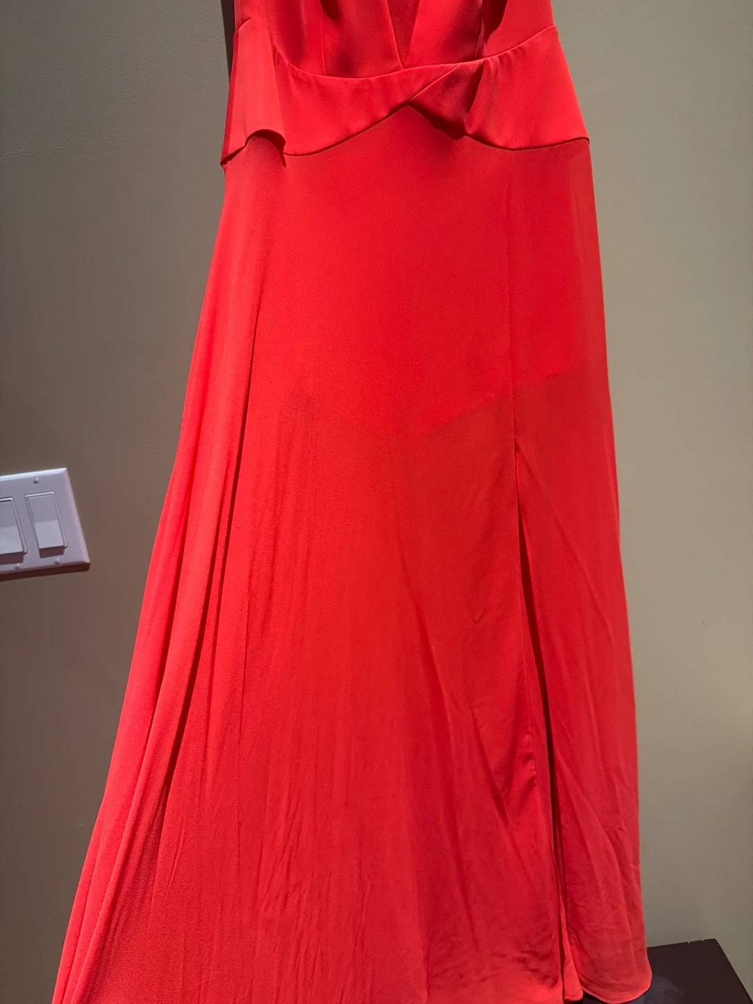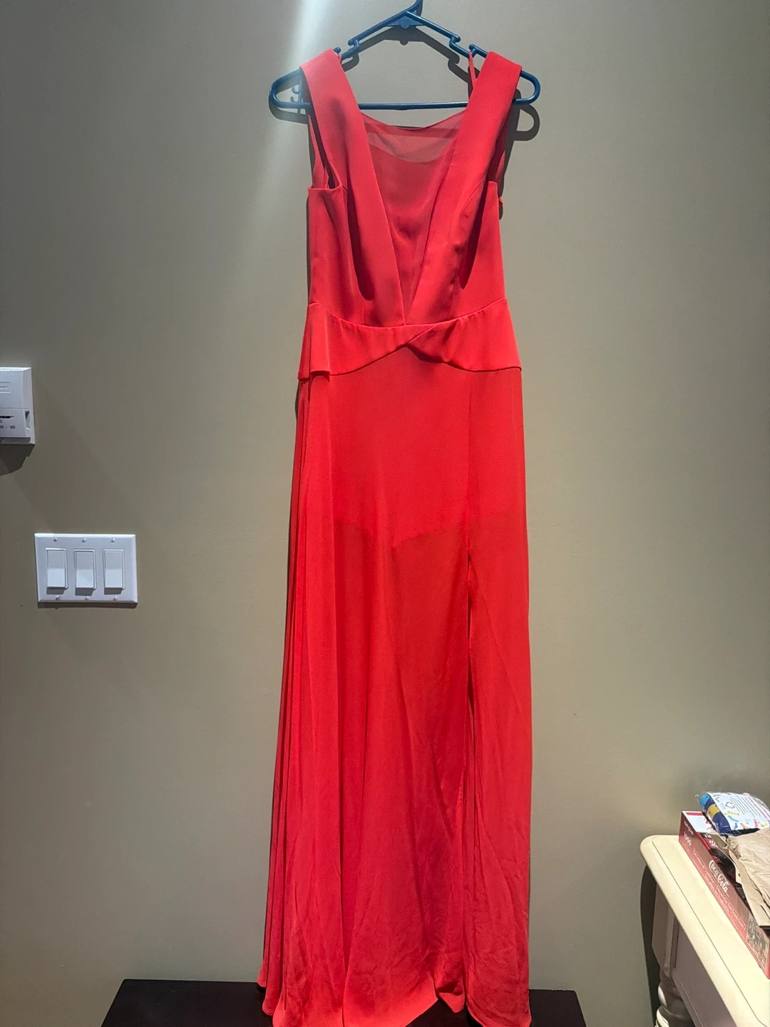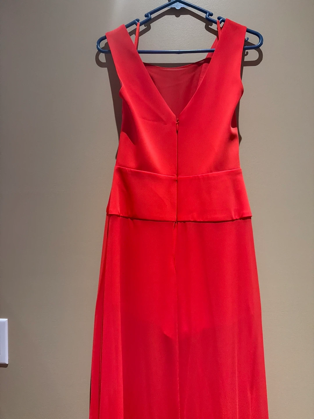Iconic BCBG hybrid gown with sheer overlay and hidden shorts perfect for a formal event or evening out. It features a V-neckline with sheer detailing at the back and a flattering high slit on the skirt. Made from a lightweight, chiffon for an elegant drape.