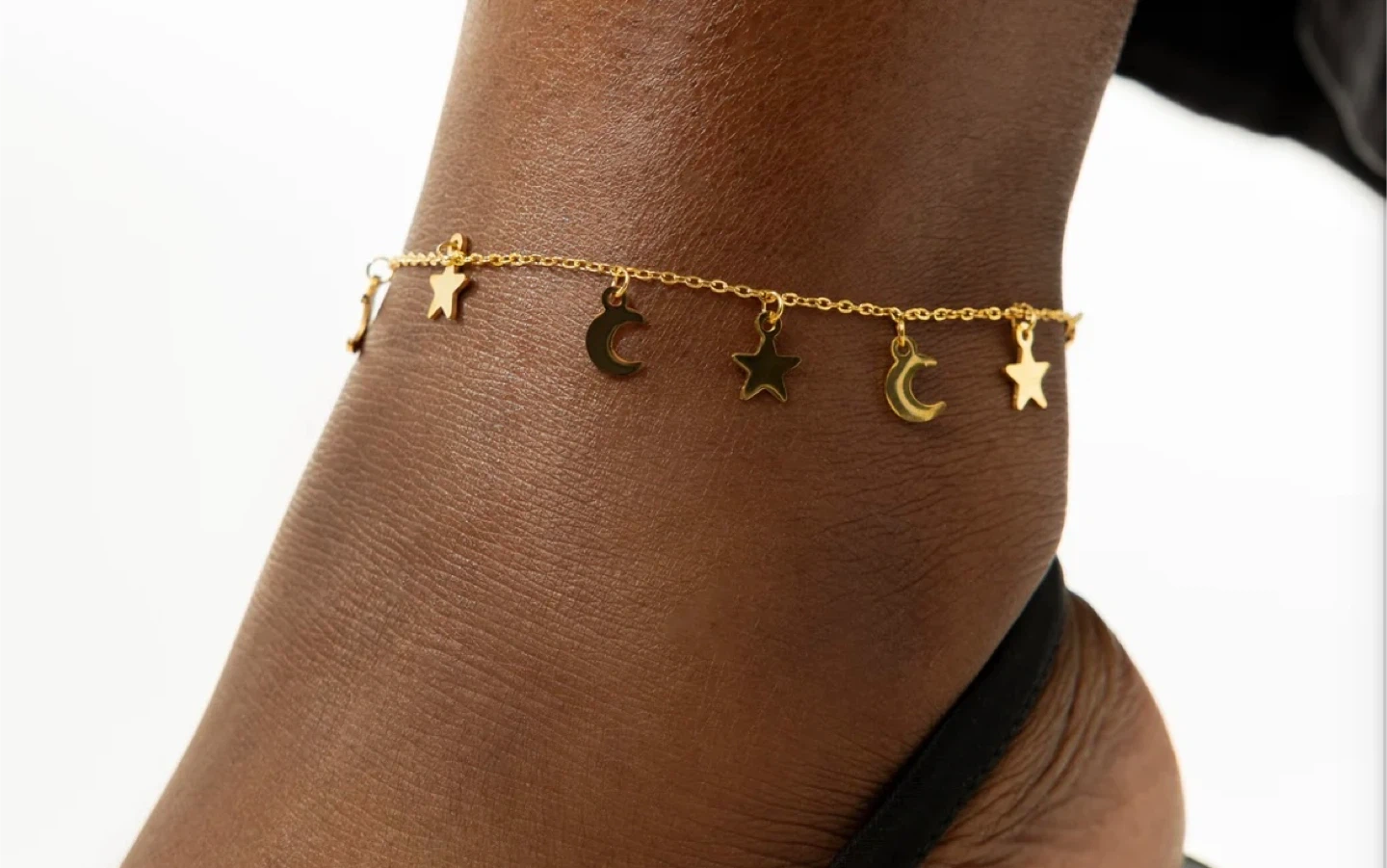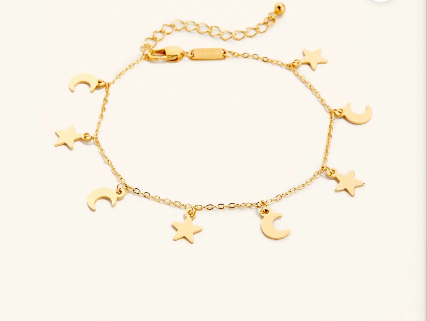 Nominal Moon & Star Anklet – 18k Gold Plated – Brand New